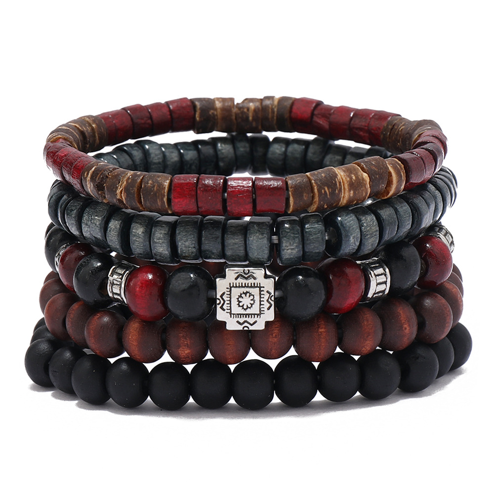 Bracelets en bois, avec noix de coco & alliage de zinc, fait à la main, 5 pièces & bijoux de mode & pour homme, multicolore, Vendu par fixé