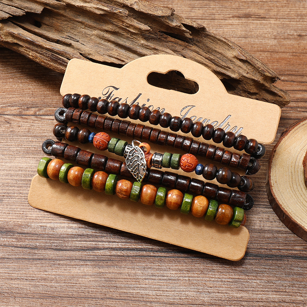 Bracelets en bois, avec noix de coco & alliage de zinc, fait à la main, 5 pièces & bijoux de mode & unisexe, multicolore, Vendu par fixé