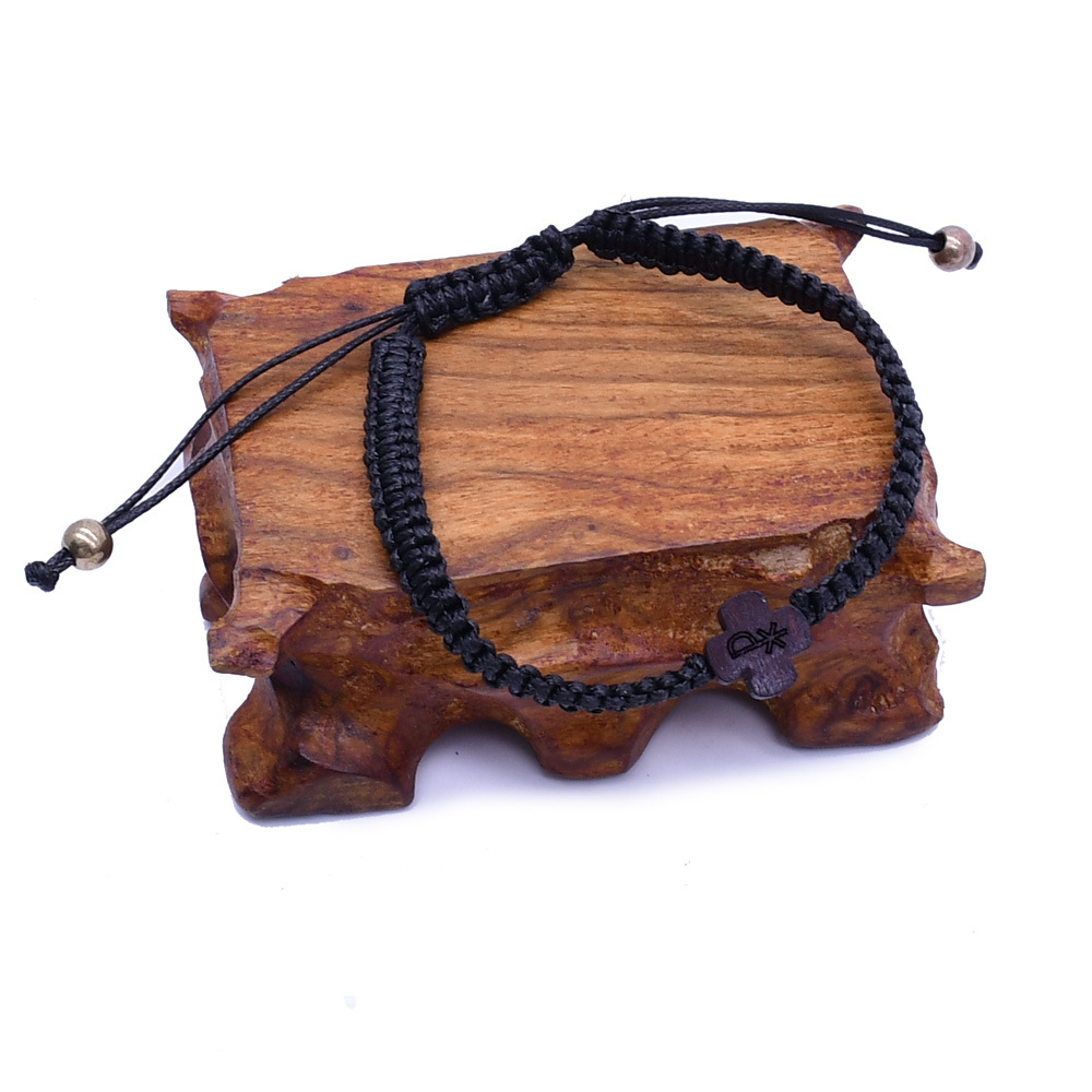 Bracelets en bois, avec corde de cire, croix, bijoux de mode, noire, Vendu par PC
