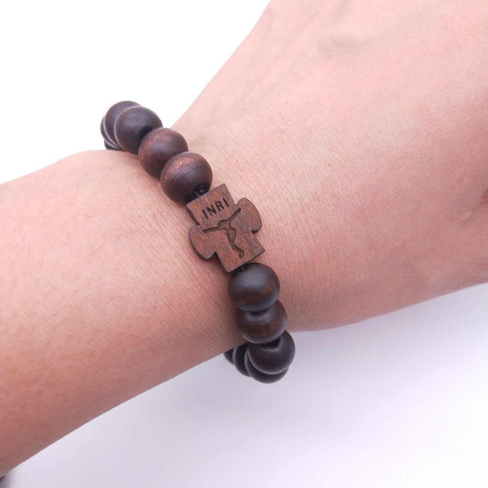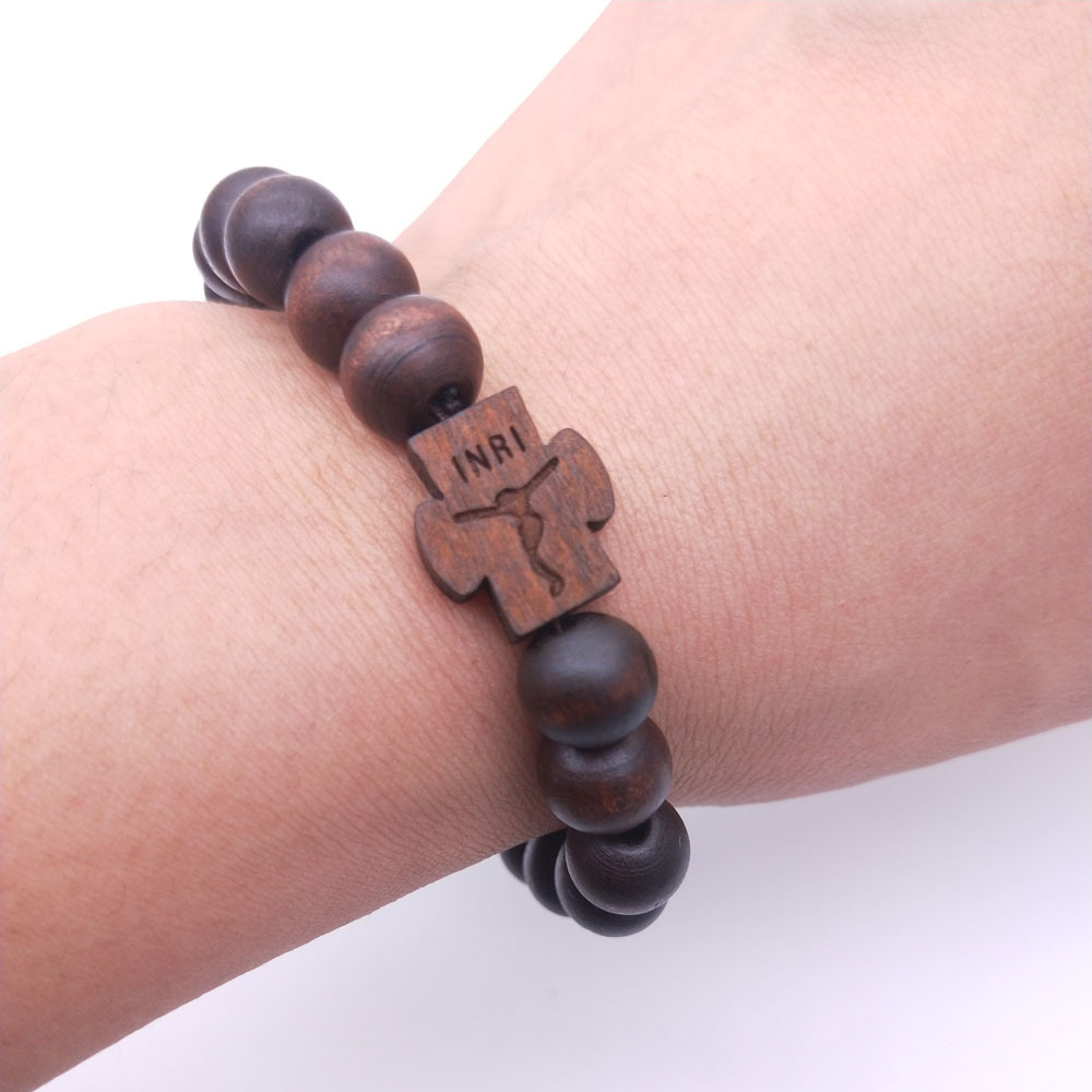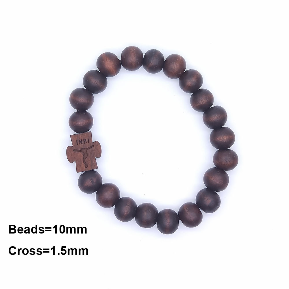 Bracelets en bois, croix, bijoux de mode, couleurs mélangées, 10mm, Longueur:16 cm, Vendu par PC