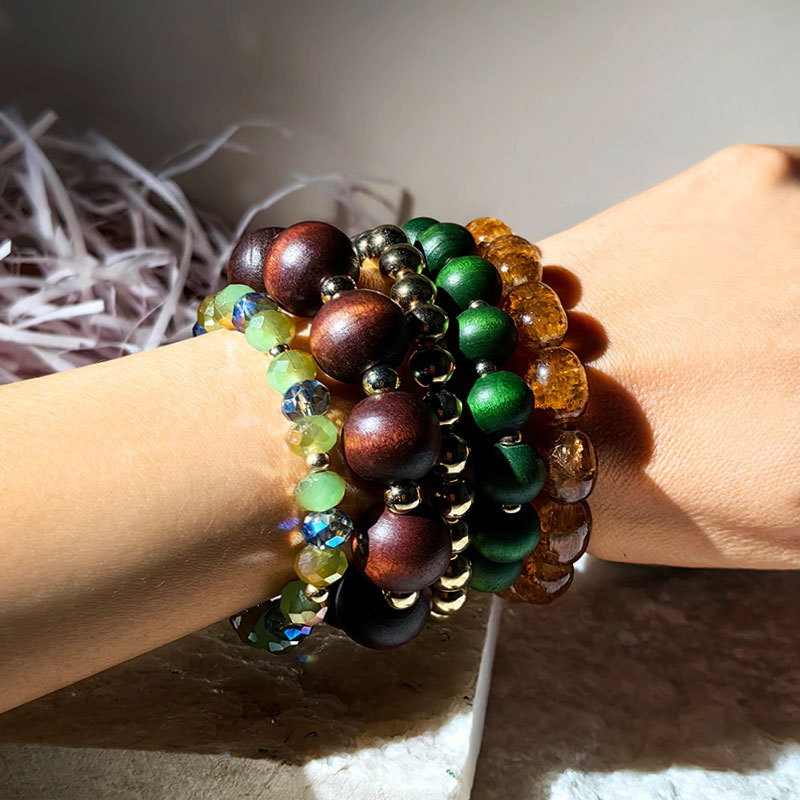 Bracelets en matériaux mixtes, bois, avec verre & plastique revêtu de cuivre, bijoux de mode, plus de couleurs à choisir, Bracelet de santé, 5PC/fixé, Vendu par fixé