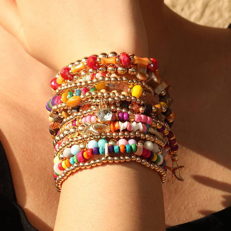 Bracelets en matériaux mixtes, Pierre naturelle, avec Seedbead & verre & plastique revêtu de cuivre & alliage de zinc, bijoux de mode, plus de couleurs à choisir, 18PC/fixé, Vendu par fixé
