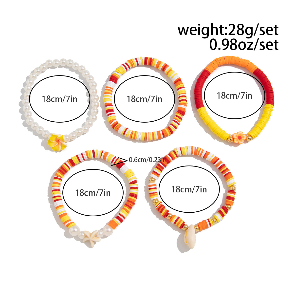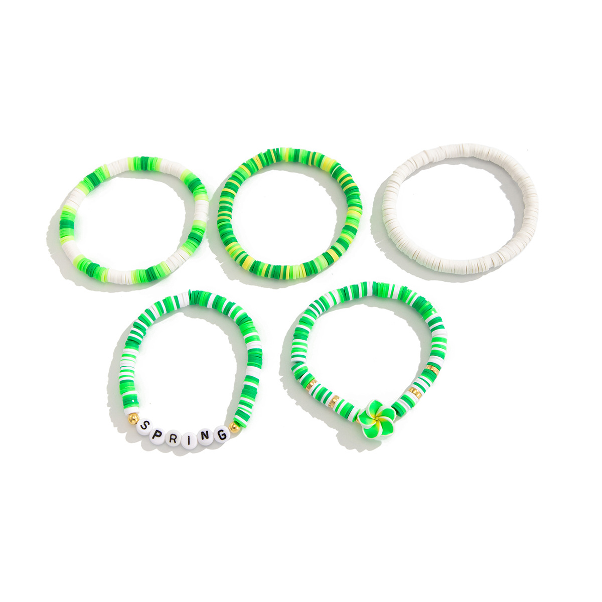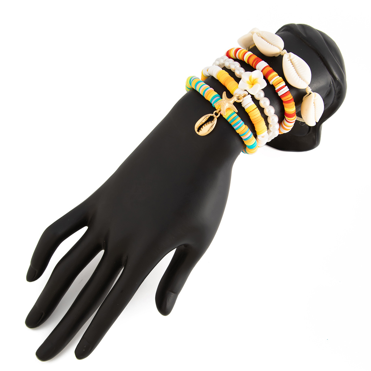Bracelets en matériaux mixtes, argile de polymère, avec fil élastique & coquille & plastique revêtu de cuivre & perle de plastique, fait à la main, bijoux de mode & styles différents pour le choix & pour femme, couleurs mélangées, Vendu par fixé