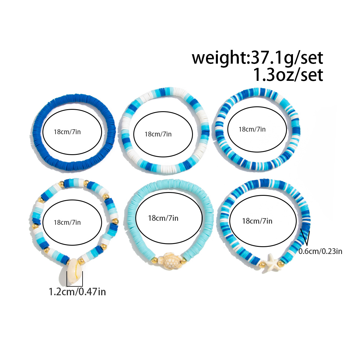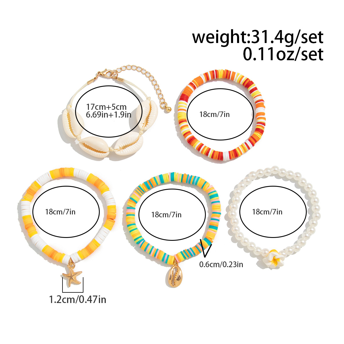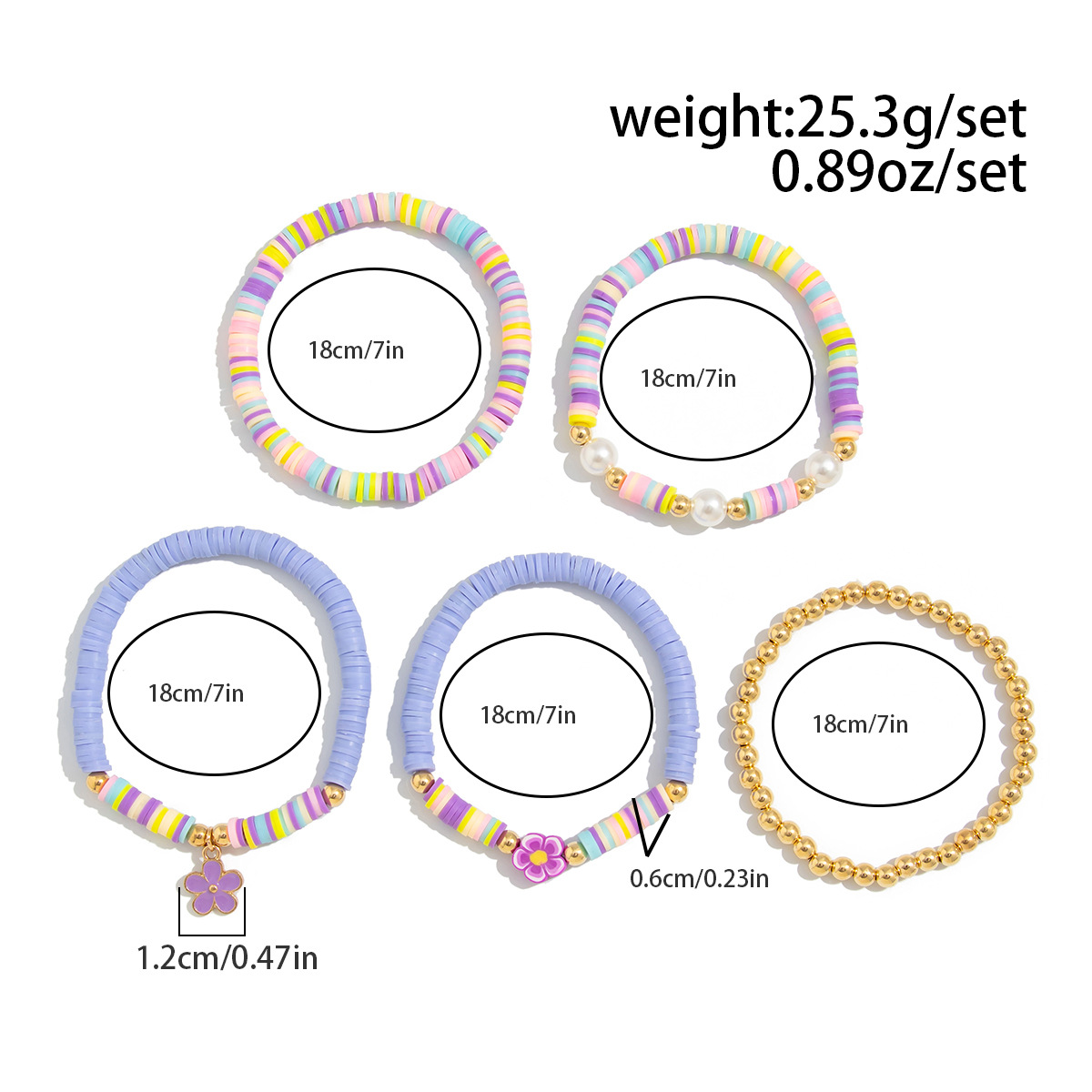 Bracelets en matériaux mixtes, argile de polymère, avec fil élastique & coquille & plastique revêtu de cuivre & perle de plastique, fait à la main, bijoux de mode & styles différents pour le choix & pour femme, couleurs mélangées, Vendu par fixé