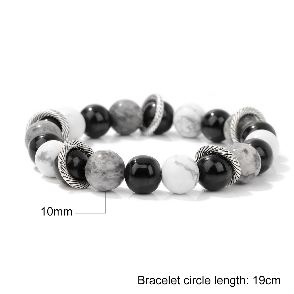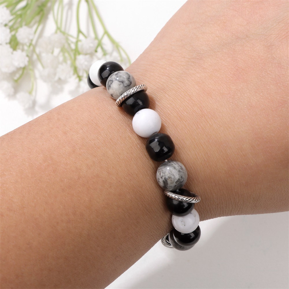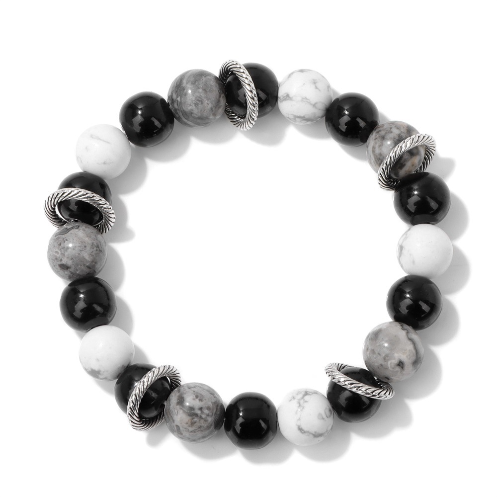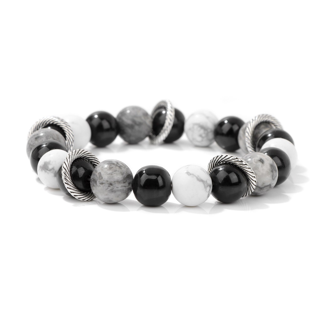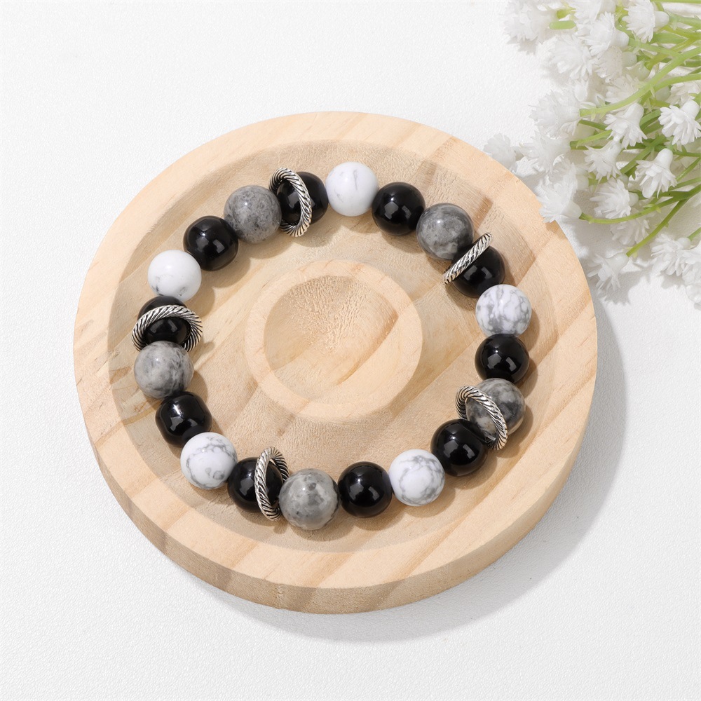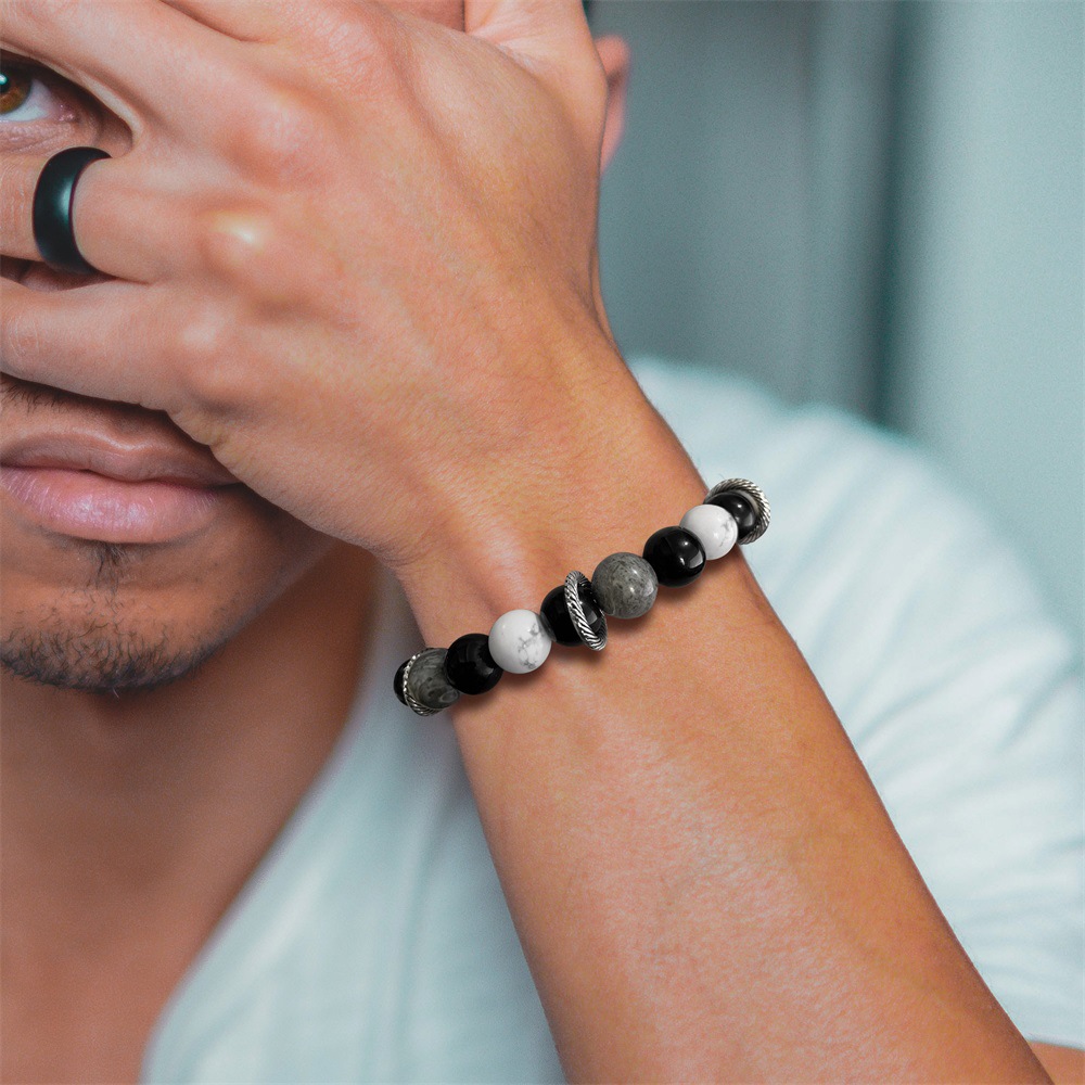 Bracelets en pierres précieuses, Carte Pierre, avec Magnésite & fil élastique, Rond, Placage de couleur argentée, pour femme, noire, Vendu par PC