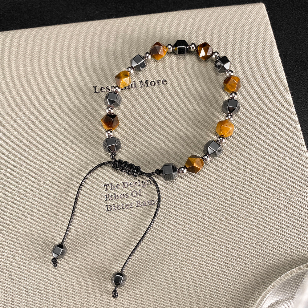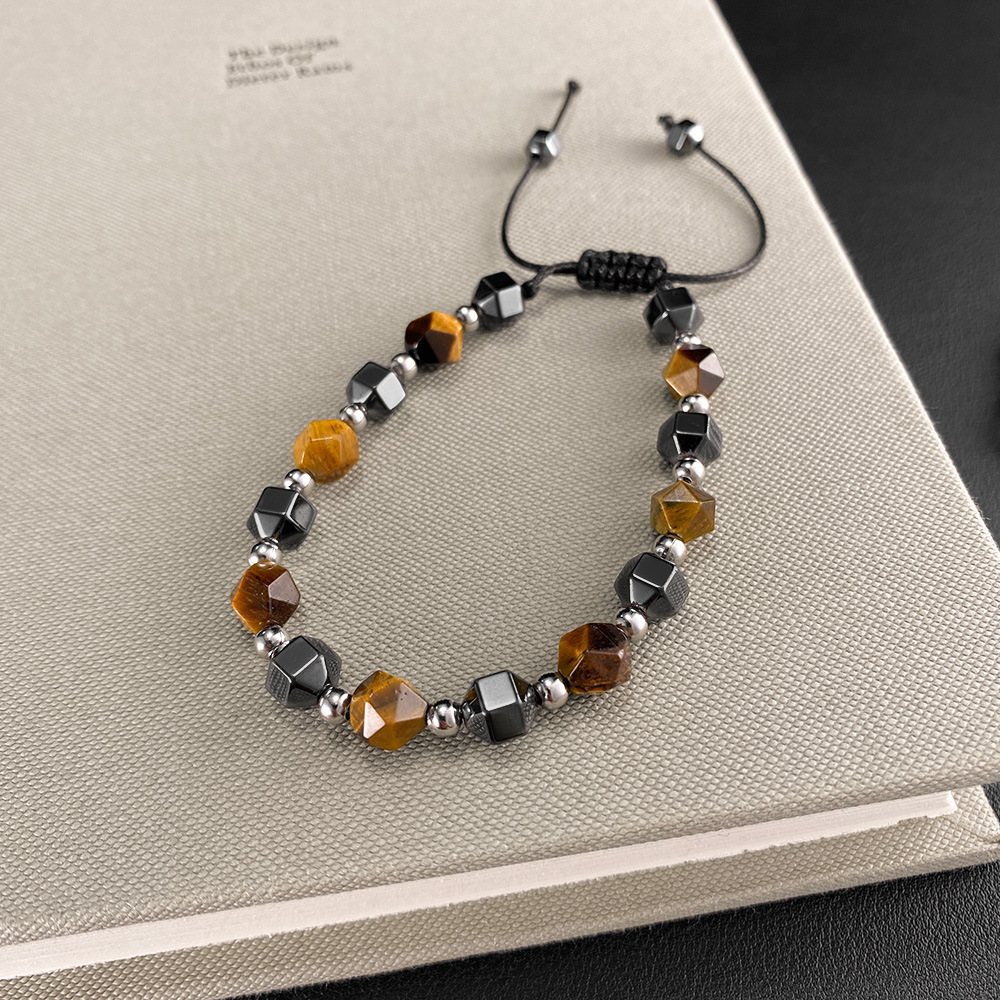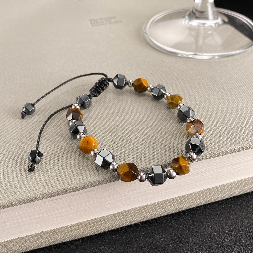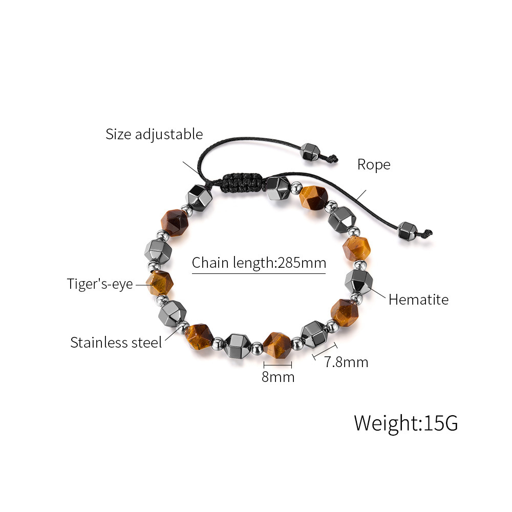 Bracelets en pierres précieuses, Acier inoxydable 304, avec corde de cire & oeil de tigre & Hématite, poli, bijoux de mode & unisexe, Longueur:285 mm, Vendu par PC