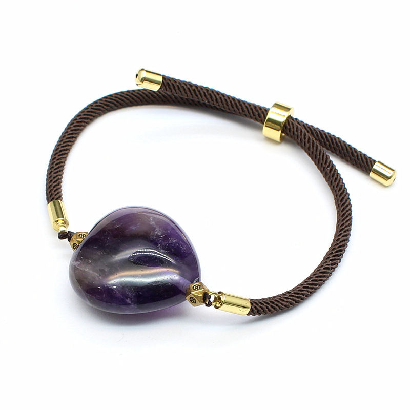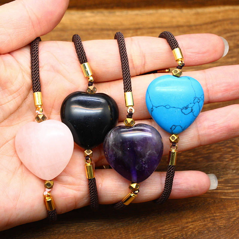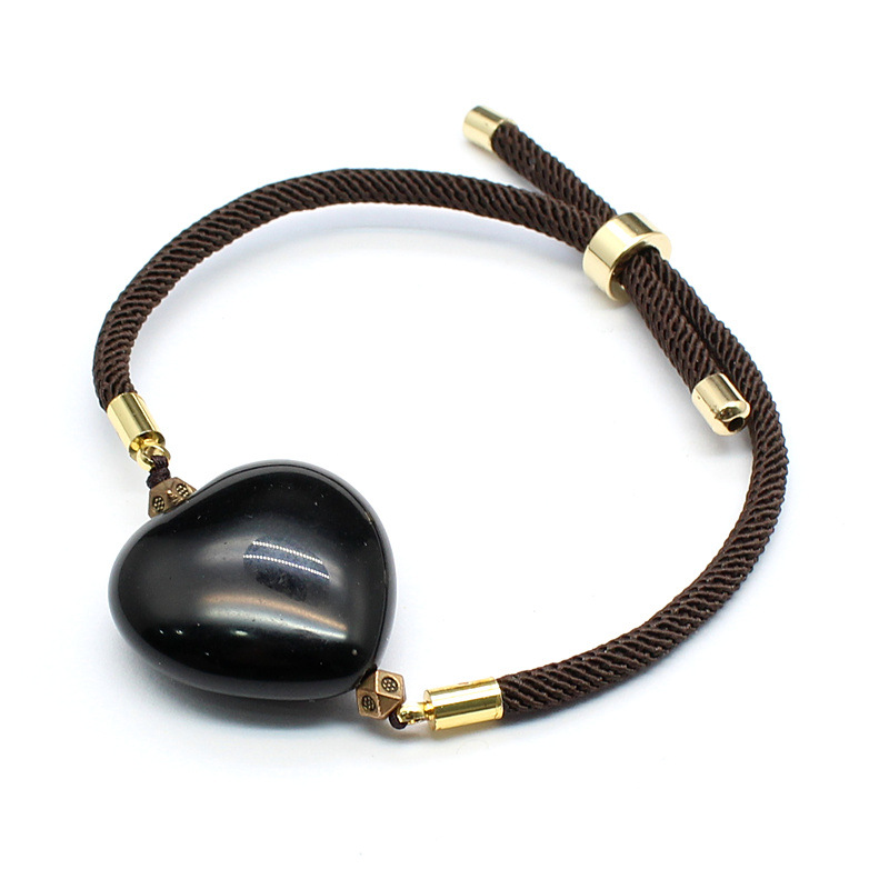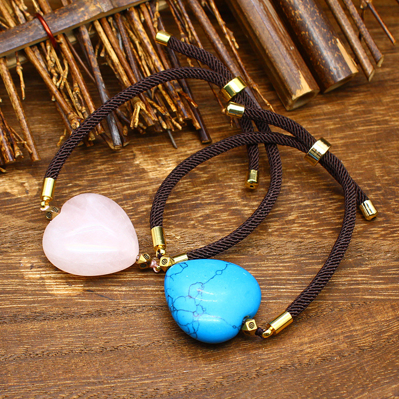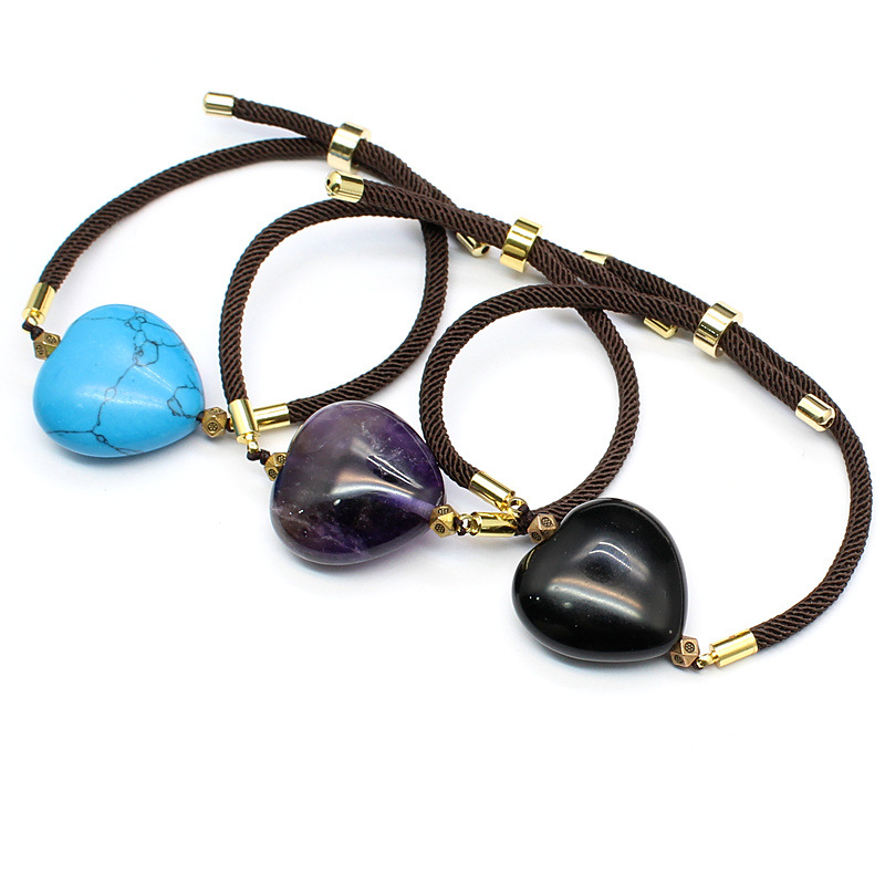 Bracelets en pierres précieuses, Pierre naturelle, avec Ciré Nylon, coeur, différents matériaux pour le choix & pour femme, plus de couleurs à choisir, 25x25x12mm, Longueur:22 cm, Vendu par PC