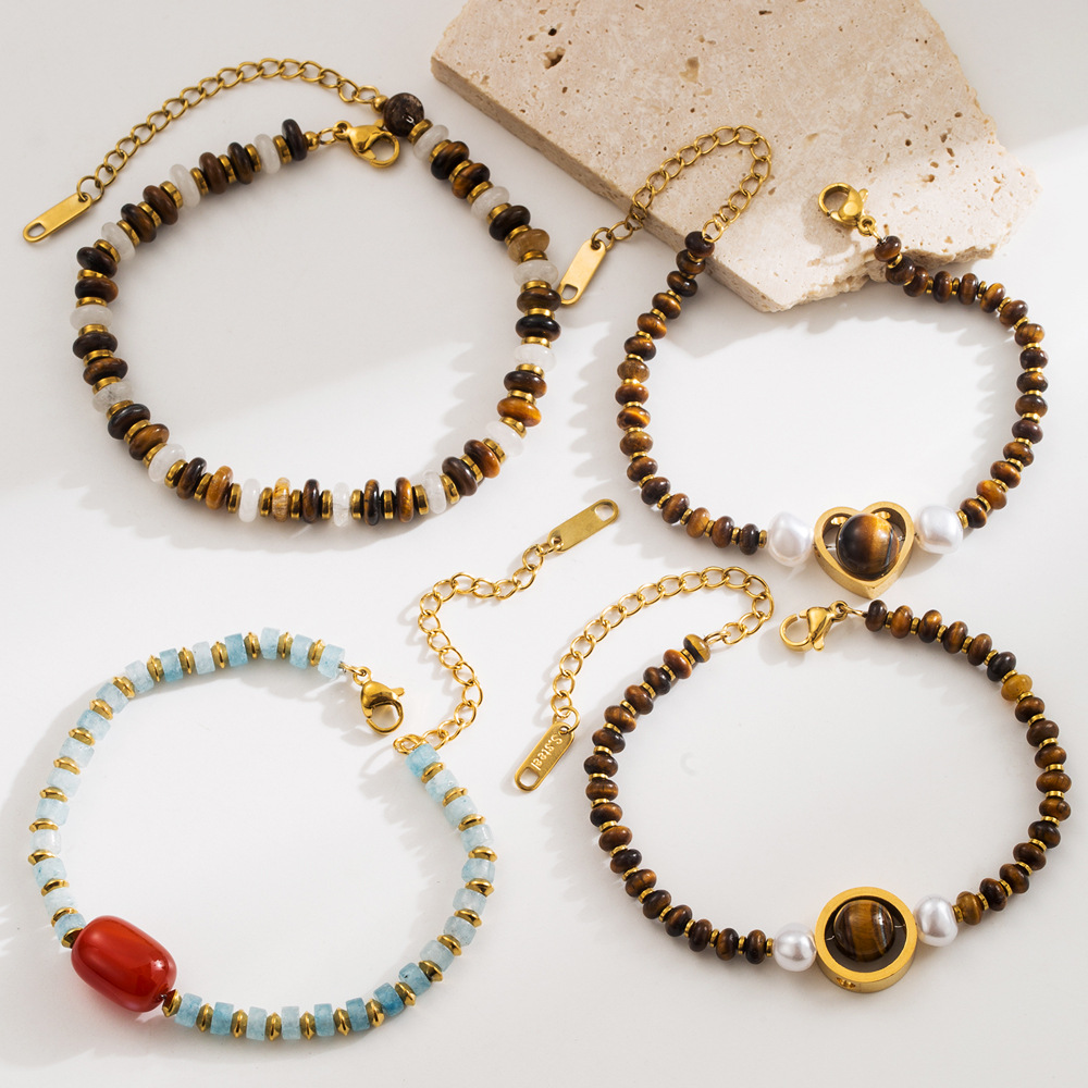 Bracelets en pierres précieuses, Acier inoxydable 304, avec Pierre naturelle, fait à la main, différents matériaux pour le choix & unisexe & styles différents pour le choix, Vendu par PC