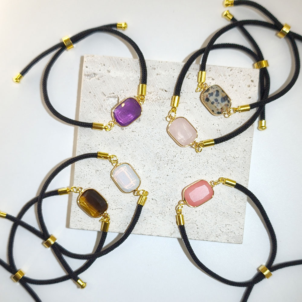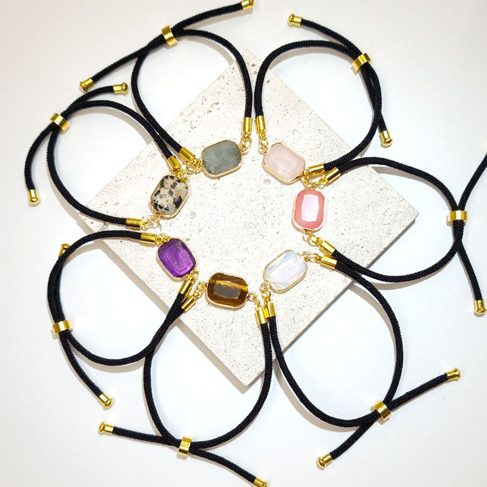 Bracelets en pierres précieuses, Pierre naturelle, avec corde en nylon, rectangle, Placage de couleur d'or, différents matériaux pour le choix & pour femme, plus de couleurs à choisir, Vendu par PC