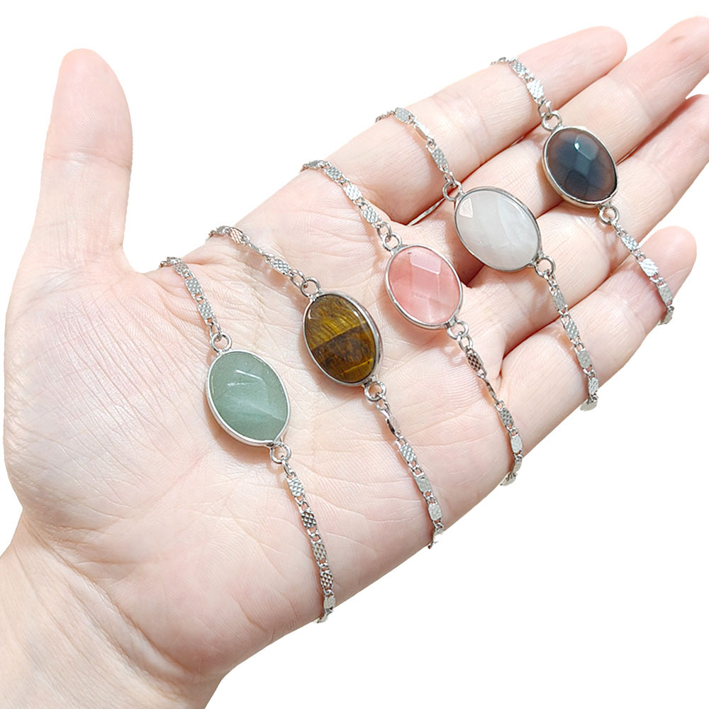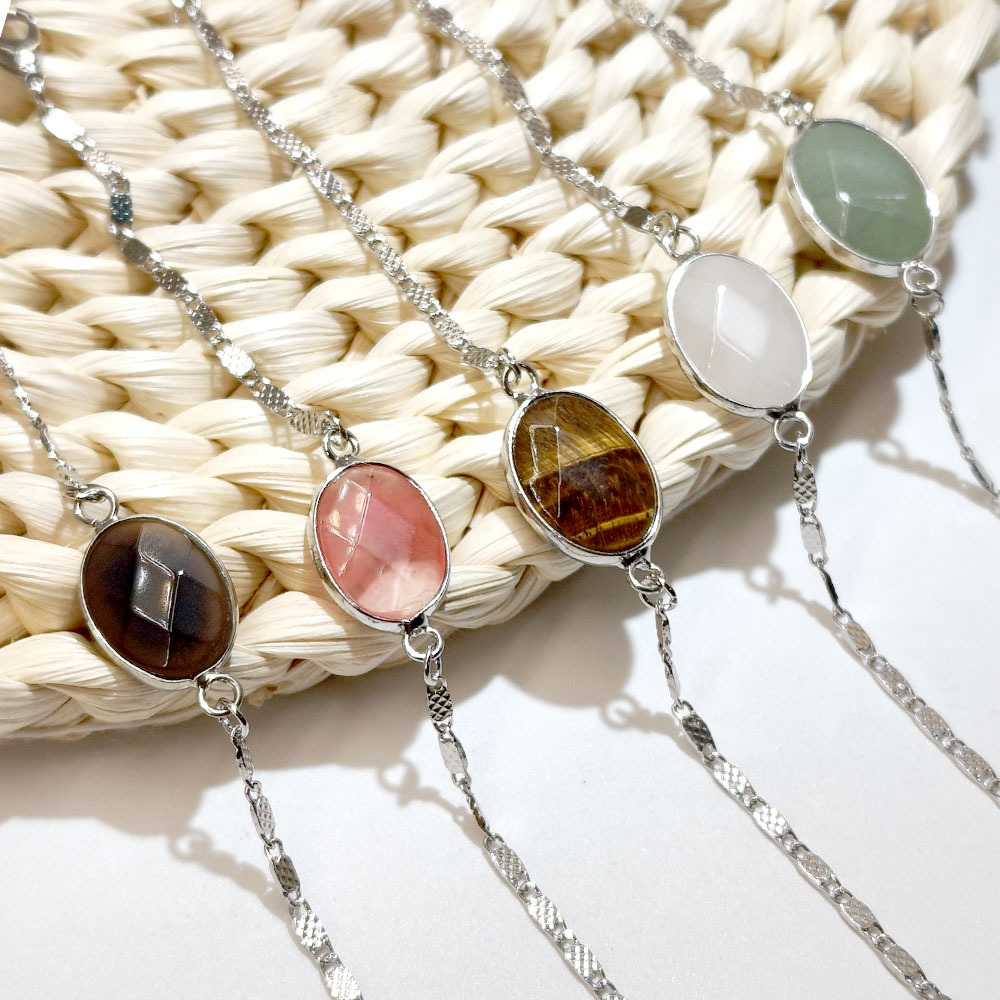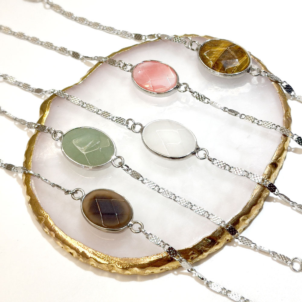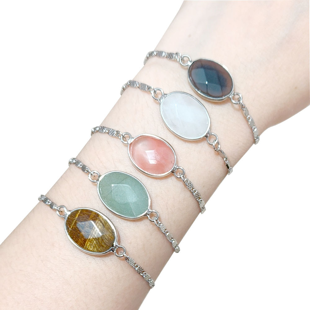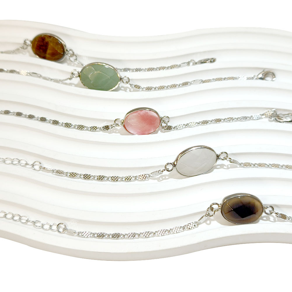 Bracelets en pierres précieuses, Acier titane, avec Pierre naturelle, Placage de couleur argentée, différents matériaux pour le choix & pour femme, plus de couleurs à choisir, Vendu par PC