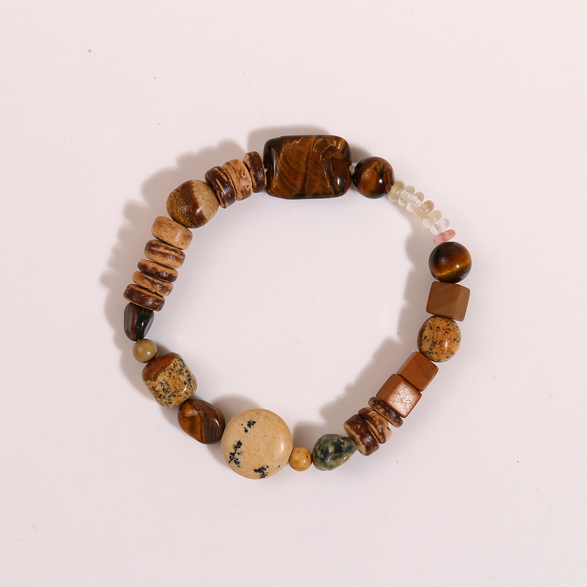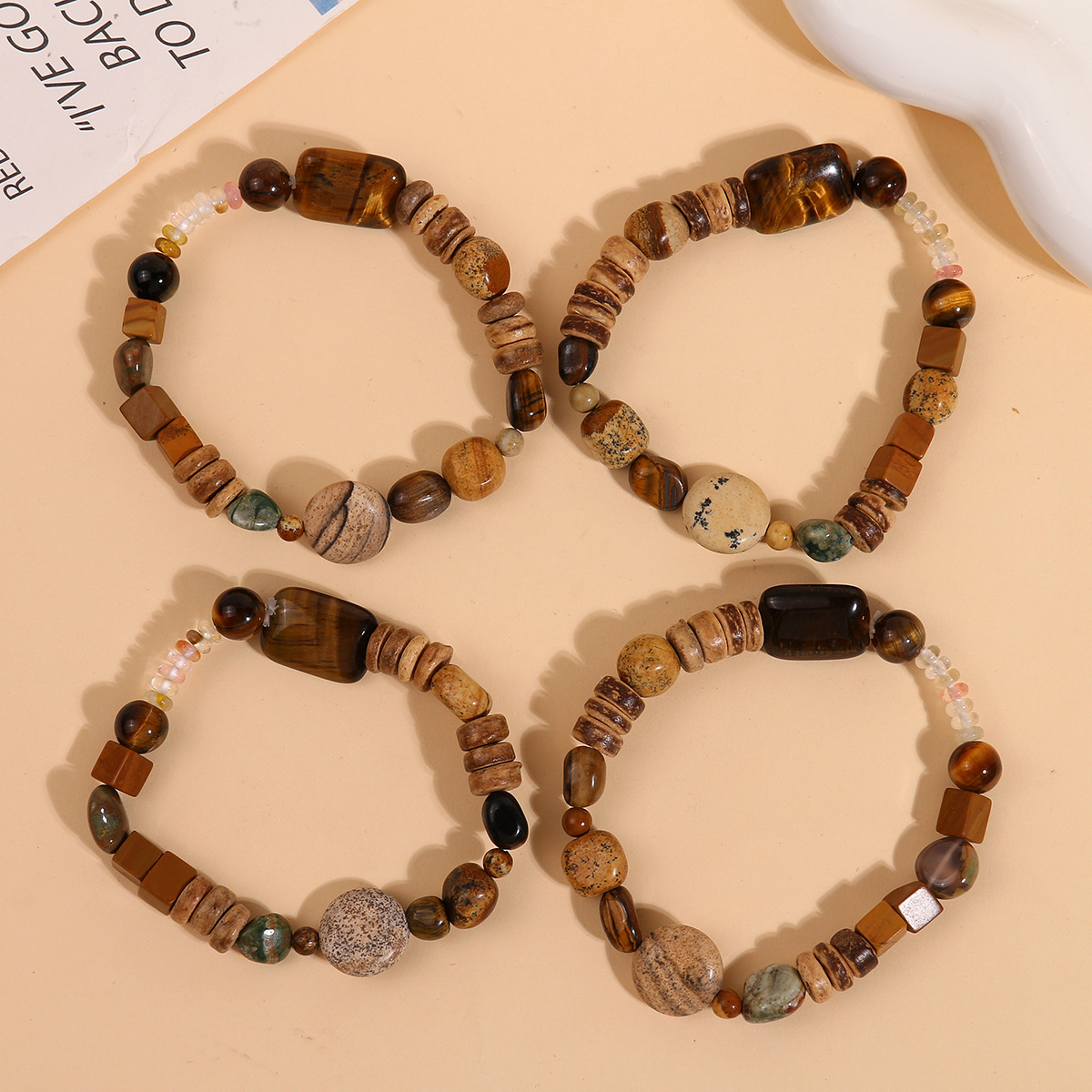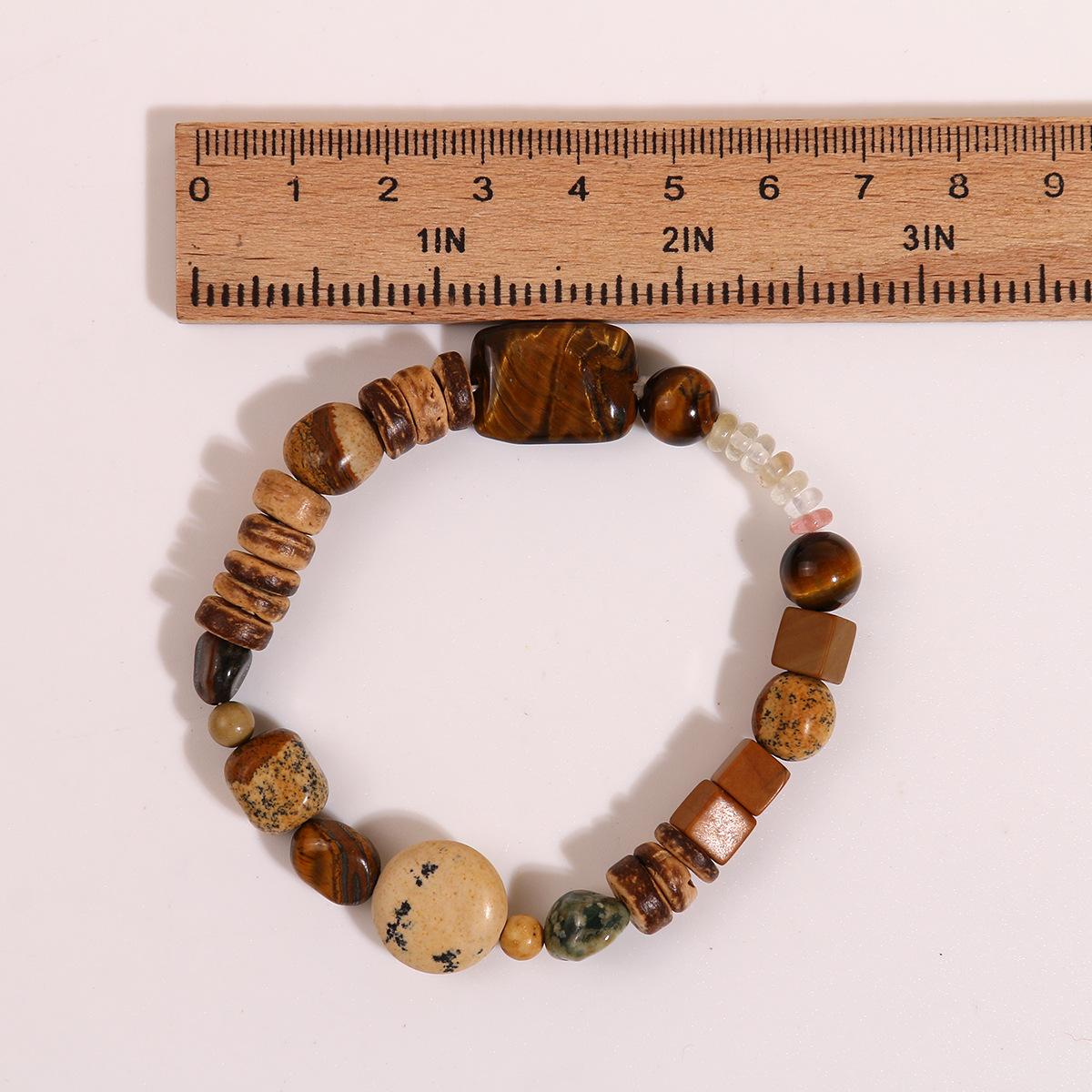 Bracelets en pierres précieuses, oeil de tigre, avec noix de coco & jaspe de photo & pierre de grain, bijoux de mode & unisexe, couleurs mélangées, Longueur:Environ 18 cm, Vendu par PC