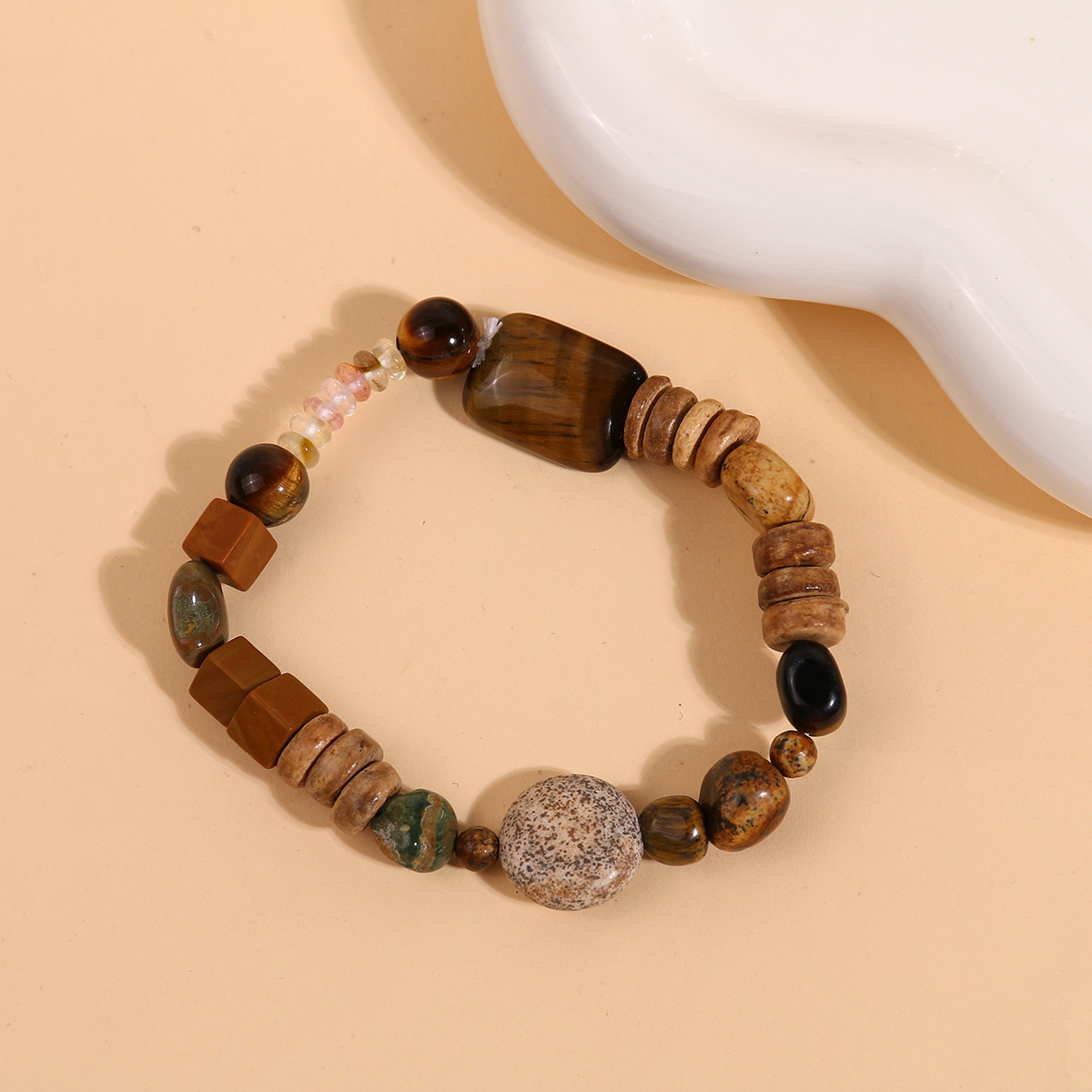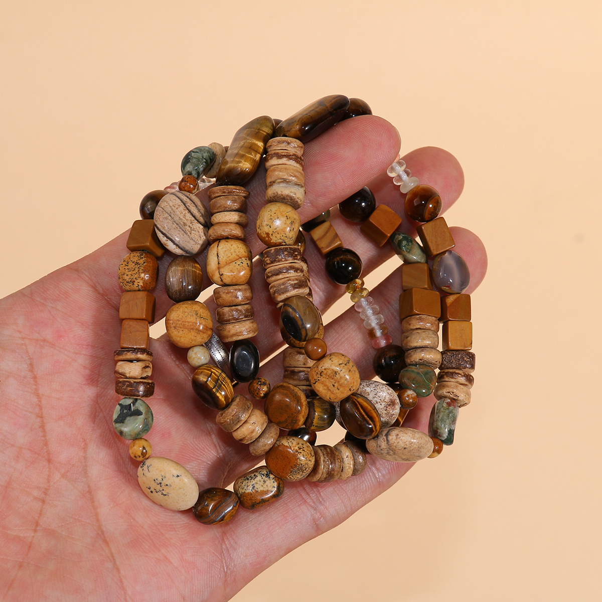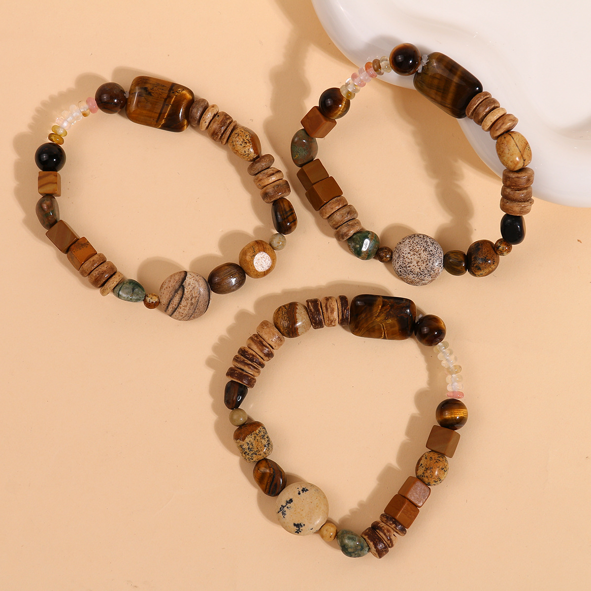 Bracelets en pierres précieuses, oeil de tigre, avec noix de coco & jaspe de photo & pierre de grain, bijoux de mode & unisexe, couleurs mélangées, Longueur:Environ 18 cm, Vendu par PC