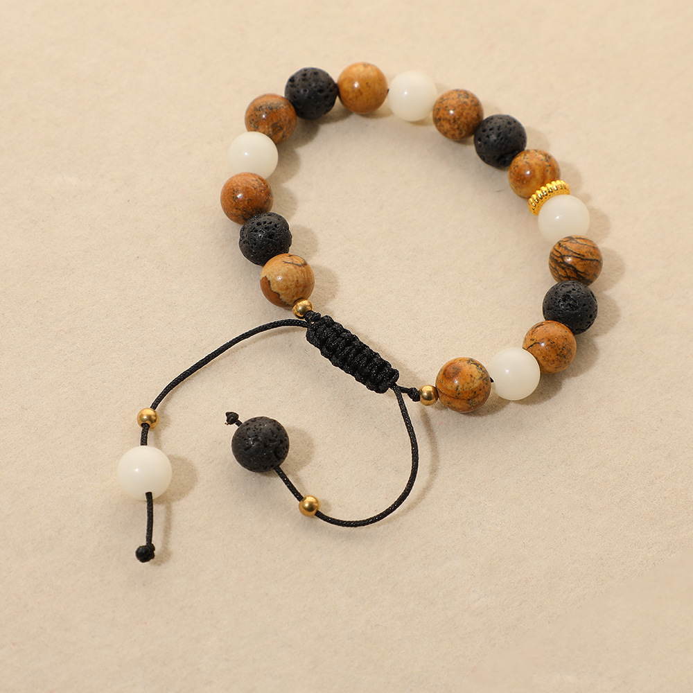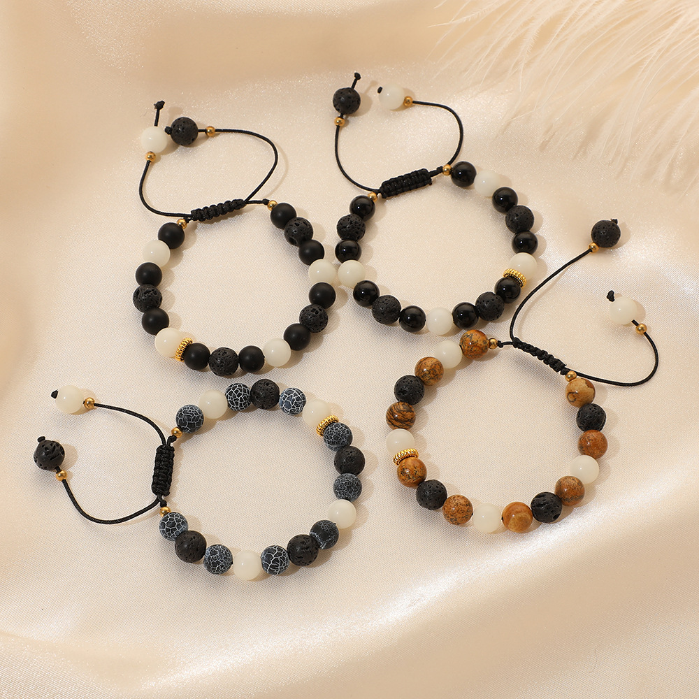 Bracelets en pierres précieuses, Pierre naturelle, avec lave volcanique & agate noire & laiton, bijoux de mode & différents matériaux pour le choix, plus de couleurs à choisir, 8mm, Longueur:17.5 cm, Vendu par PC