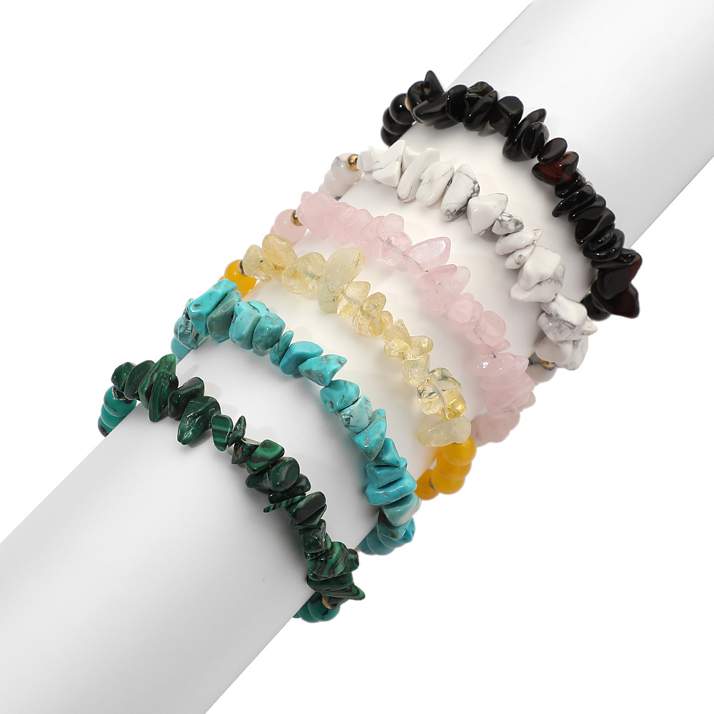 Bracelets en pierres précieuses, Shoushan Stone, avec laiton, Plaqué de couleur d'argent, élastique & unisexe & styles différents pour le choix, plus de couleurs à choisir Environ 7.5 pouce, Vendu par fixé