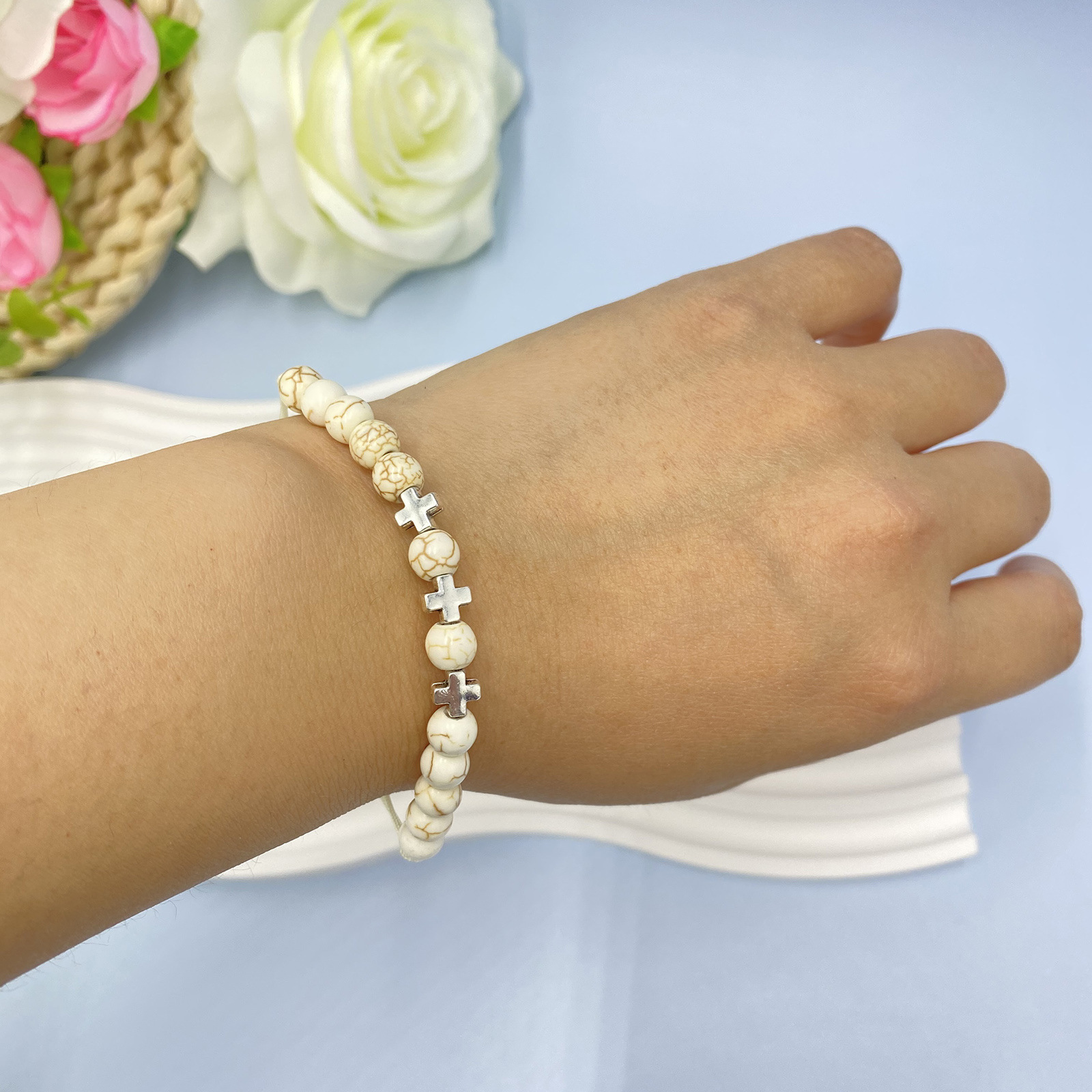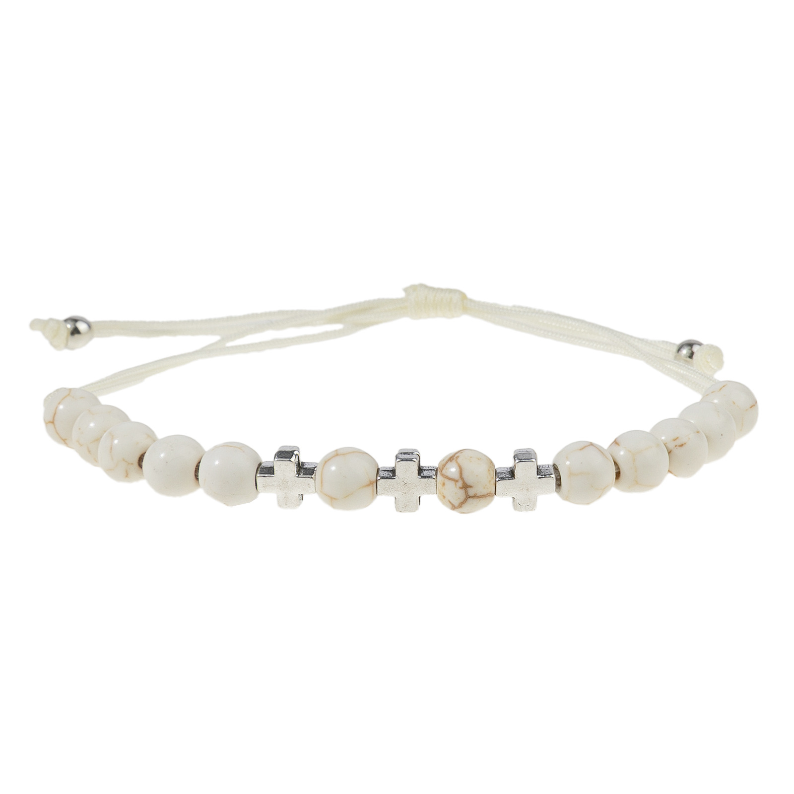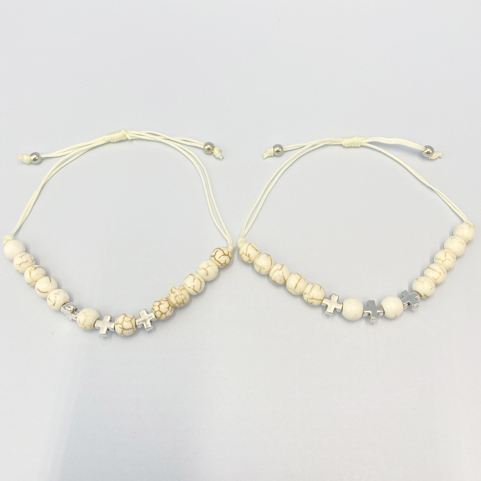 Bracelets en pierres précieuses, Magnésite, avec Cordon de noeud & alliage de zinc, croix, fait à la main, 12 pièces & Réglable & bijoux de mode & unisexe, blanc, Longueur:Environ 15-28 cm, Vendu par fixé