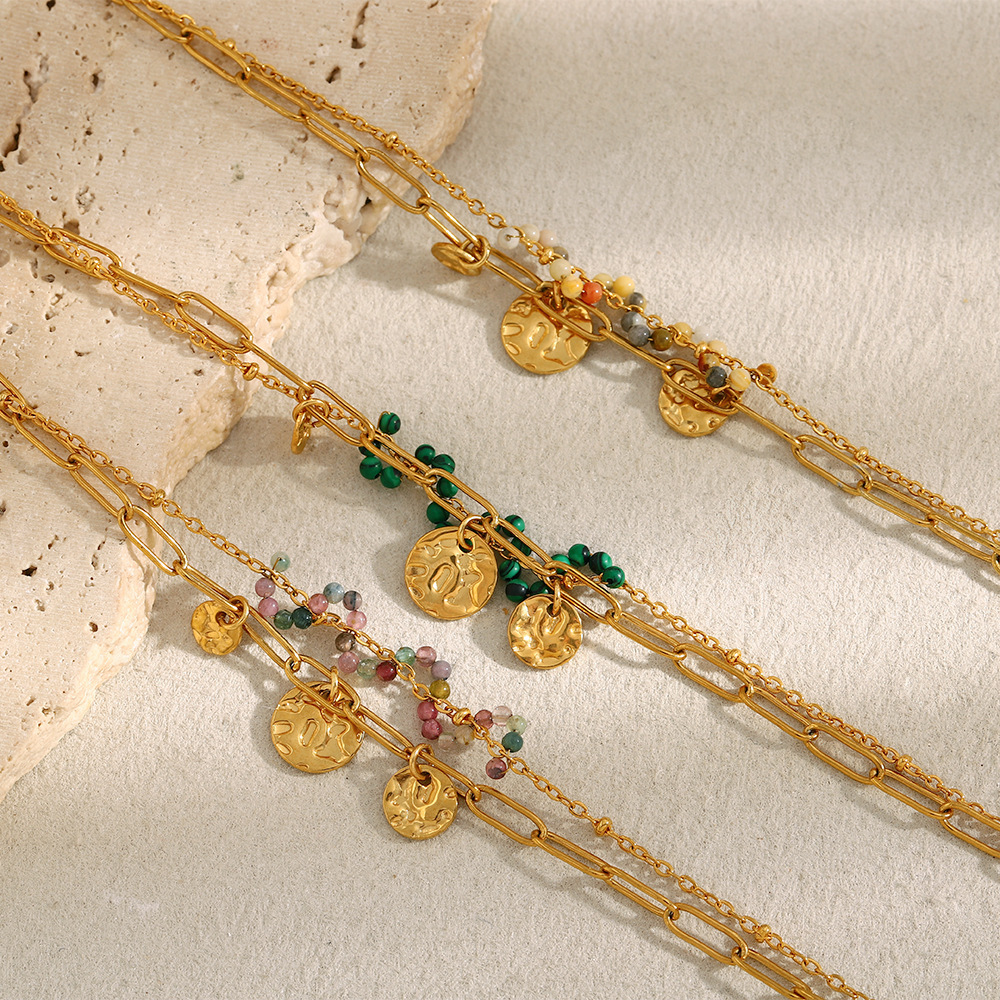 Bracelets en pierres précieuses, acier inoxydable 316L, avec Pierre naturelle, Plaqué or 18K, Double couche & différents matériaux pour le choix & pour femme, Vendu par PC