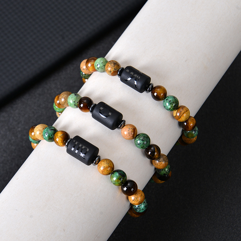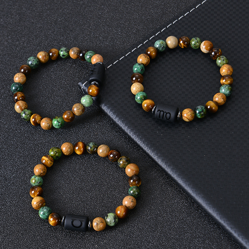 Bracelets en pierres précieuses, Pierre naturelle, avec fil élastique & jaspe de photo & oeil de tigre, fait à la main, unisexe & styles différents pour le choix & modèles différents pour le choix, Longueur:Environ 20 cm, Vendu par PC