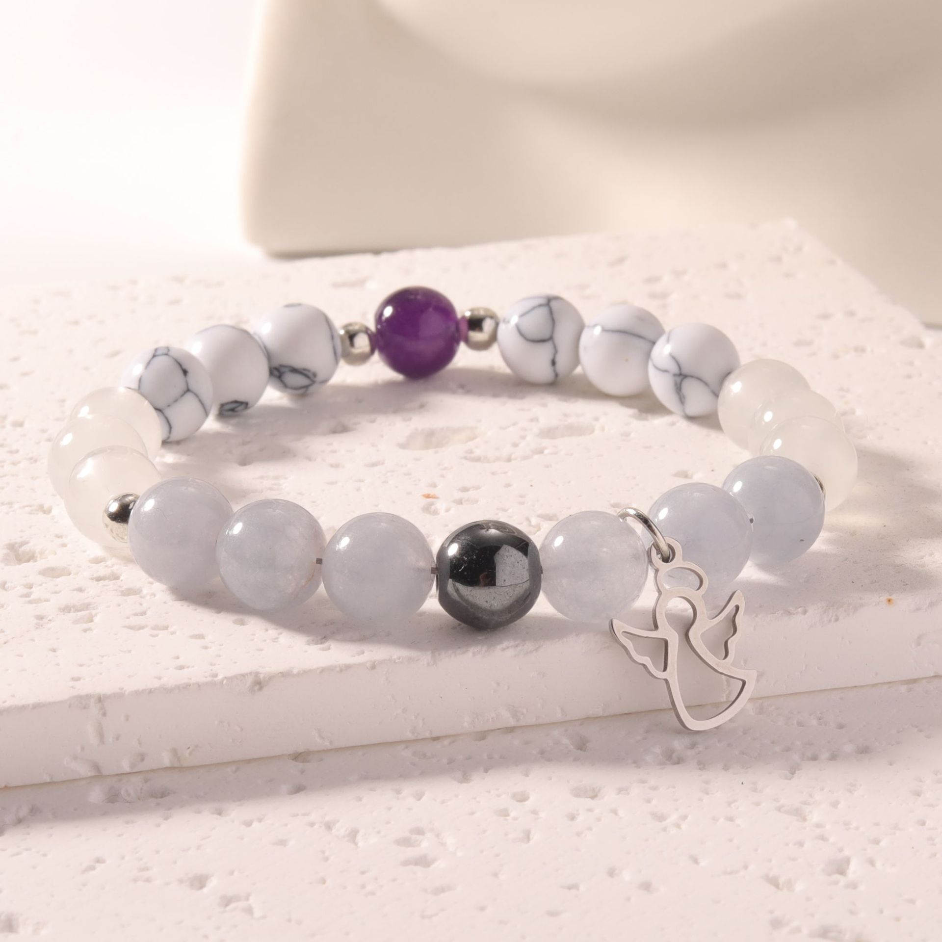 Bracelets en pierres précieuses, pierre gemme, avec laiton, ange, Placage de couleur platine, naturel & différents matériaux pour le choix & chaîne ovale   Environ 9 pouce, Vendu par brin