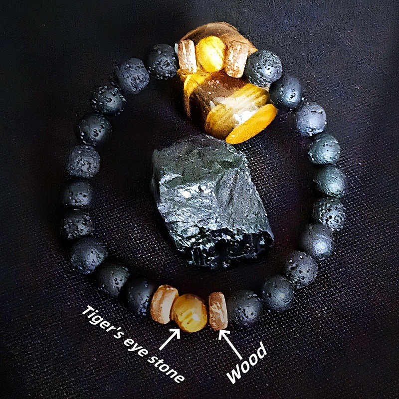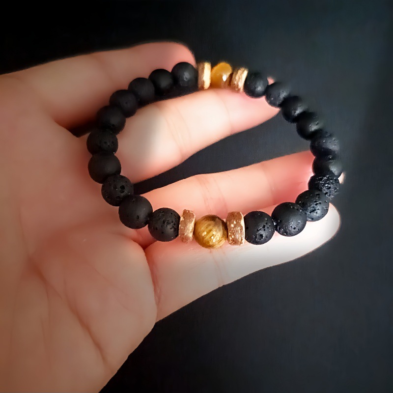 Bracelets en pierres précieuses, oeil de tigre, avec lave volcanique, Placage de couleur d'or, bijoux de mode, plus de couleurs à choisir, Vendu par PC