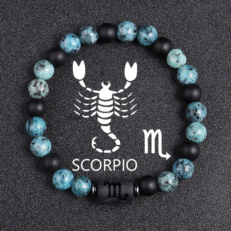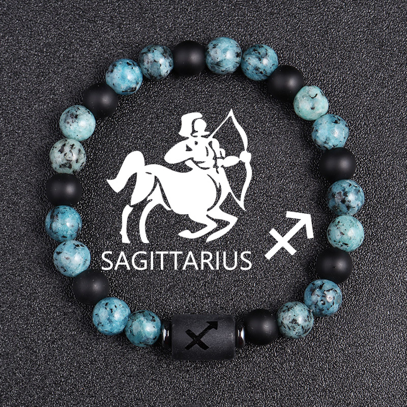 Bracelets en pierres précieuses, laiton, avec Obsidienne & agate bleue, 12 Signes du Zodiaque, bijoux de mode, plus de couleurs à choisir, 10x13mm, Longueur:19 cm, Vendu par brin