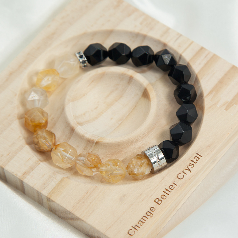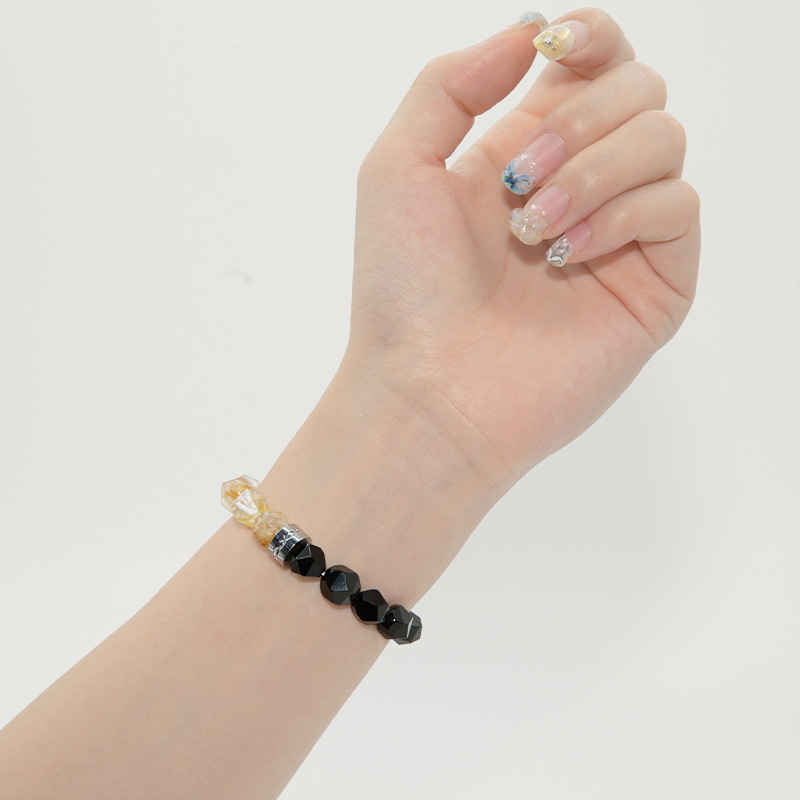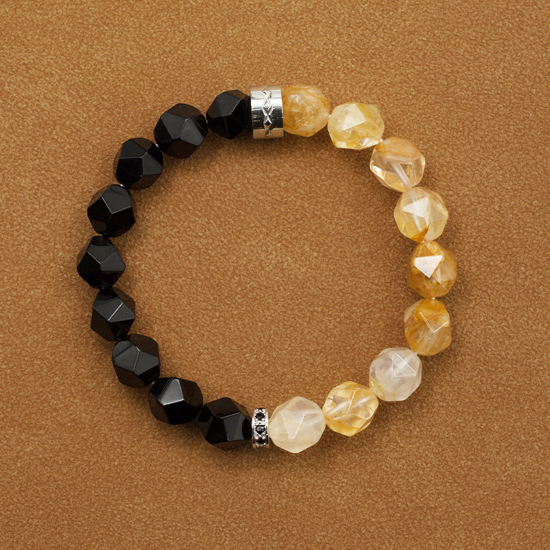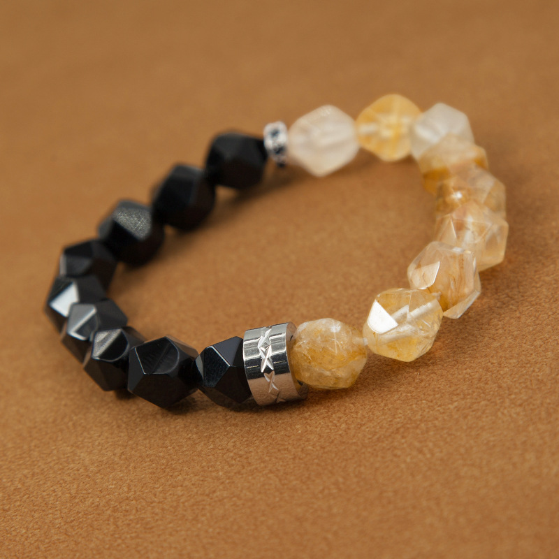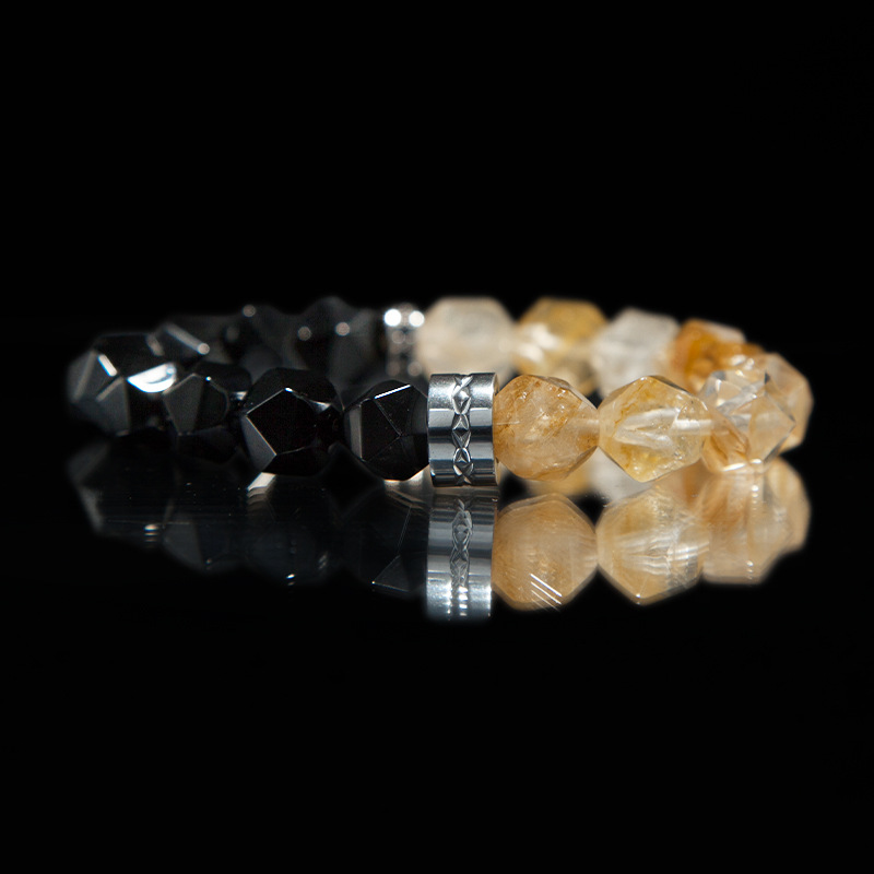 Bracelets en pierres précieuses, Le Golden healer quartz, avec Acier titane & agate noire, bijoux de mode, couleurs mélangées, 10mm, Longueur:20 cm, Vendu par PC