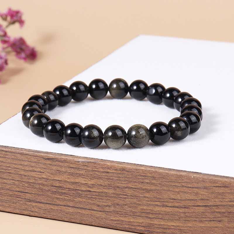 Bracelets en pierres précieuses, or Obsidian, bijoux de mode, couleurs mélangées, Longueur:19 cm, Vendu par PC
