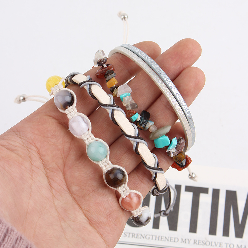 Bracelets en pierres précieuses, Acier inoxydable 304, avec Pierre naturelle, fait à la main, différents matériaux pour le choix & unisexe & styles différents pour le choix, Vendu par PC