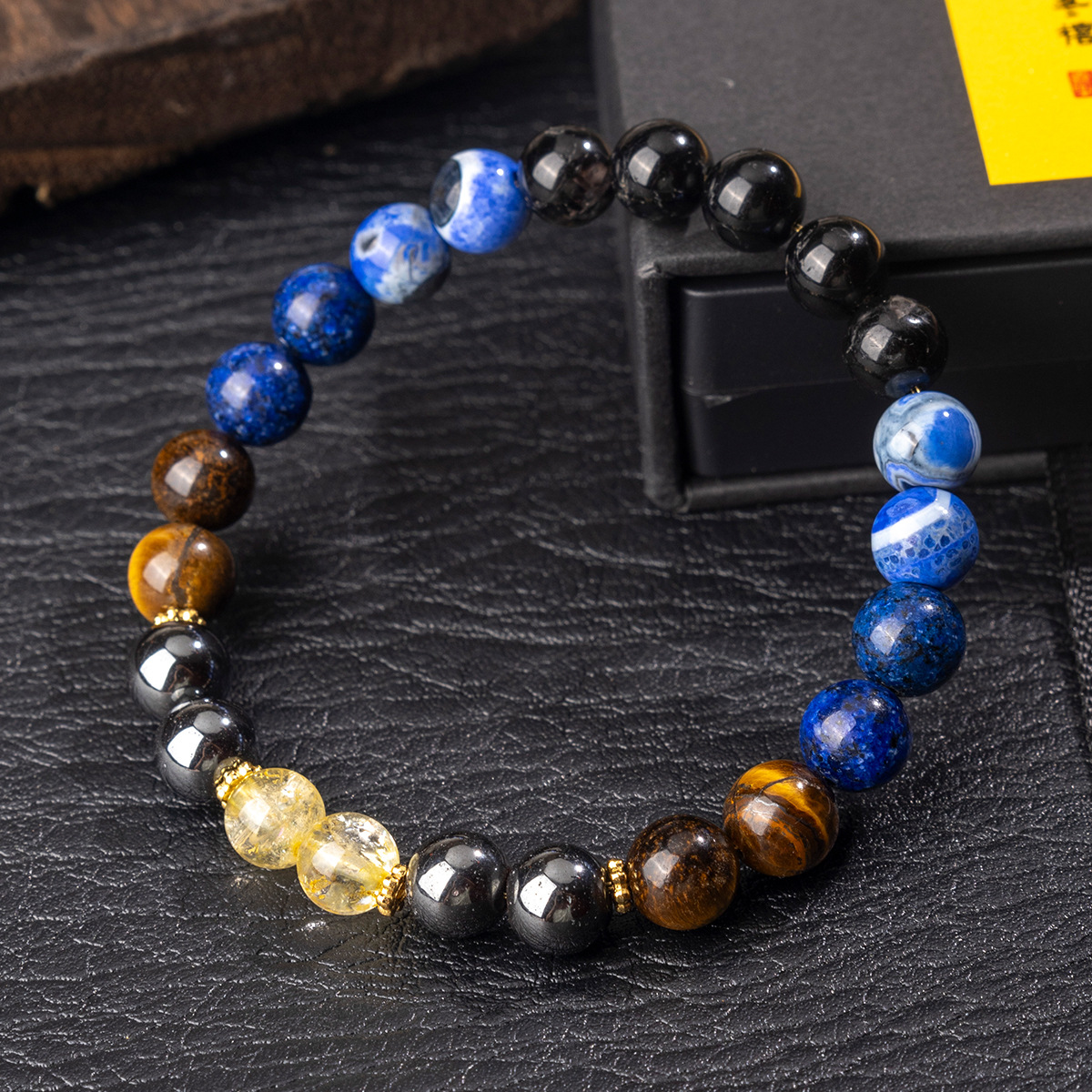 Bracelets en pierres précieuses, pierre gemme, avec fil élastique & laiton, Placage, naturel & différents matériaux pour le choix & unisexe & pavé de micro zircon, 6mm, 8mm Environ 7.5 pouce Vendu par lot