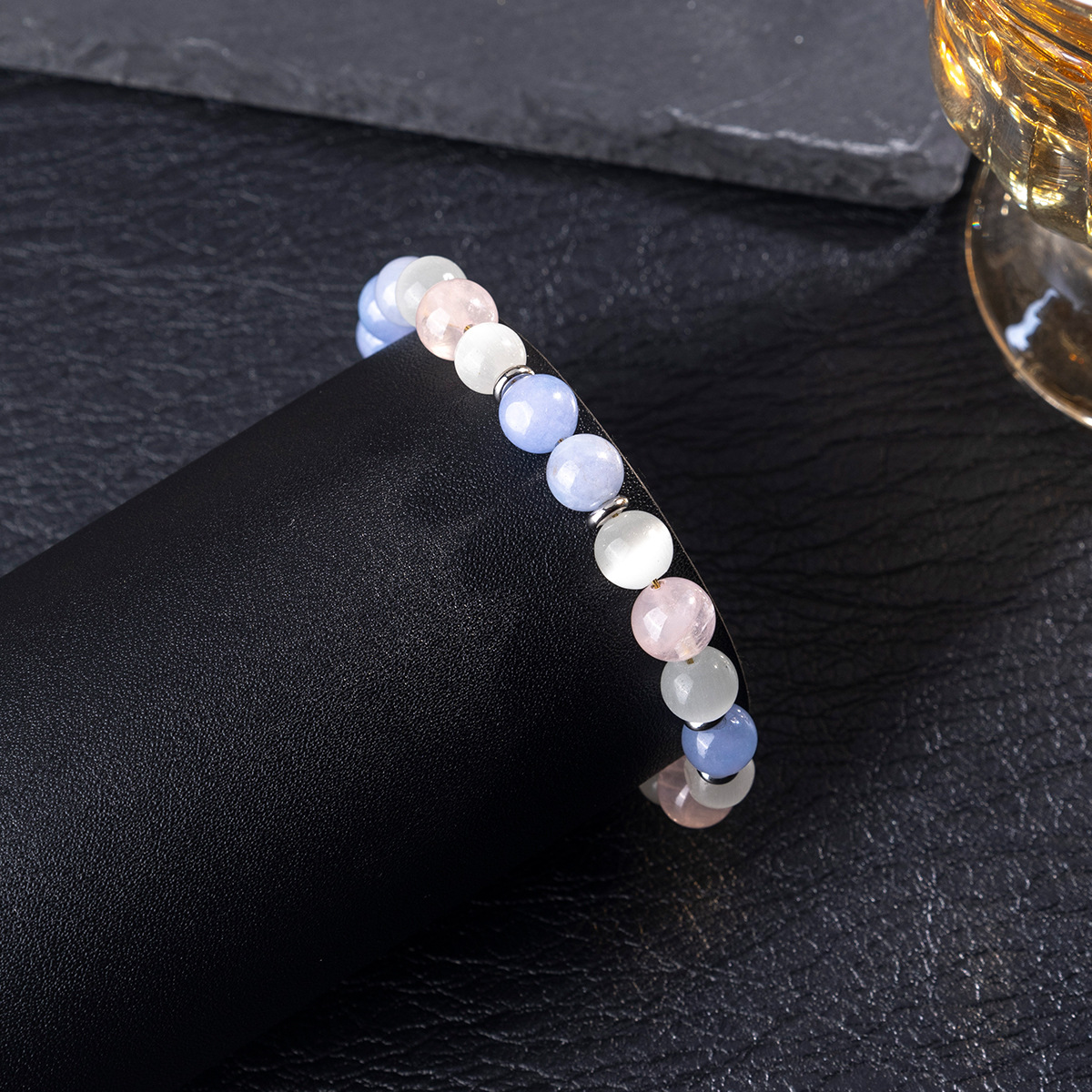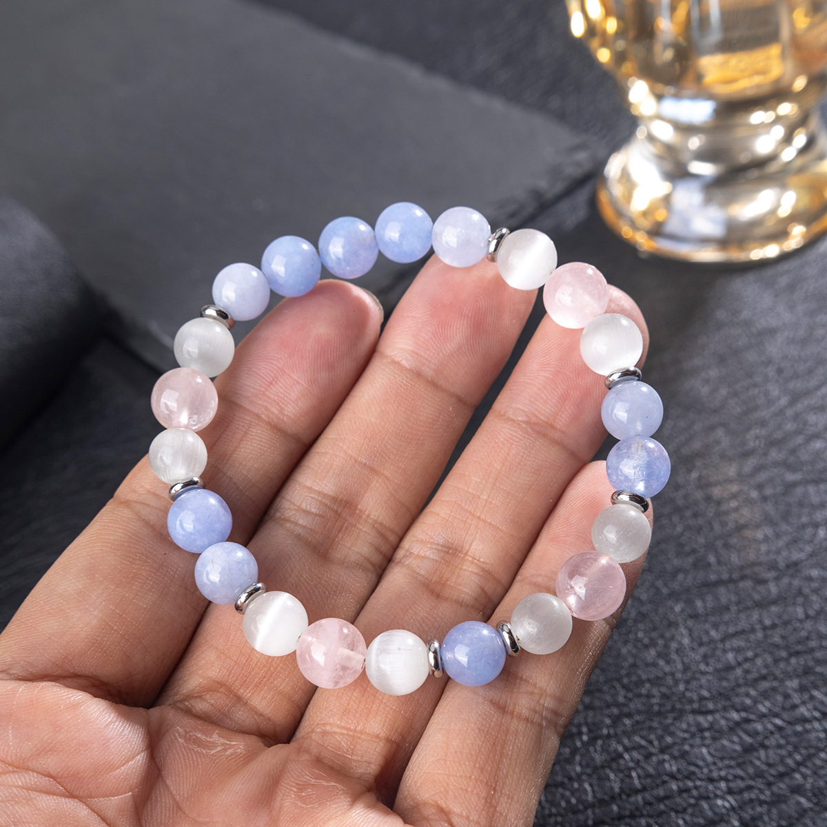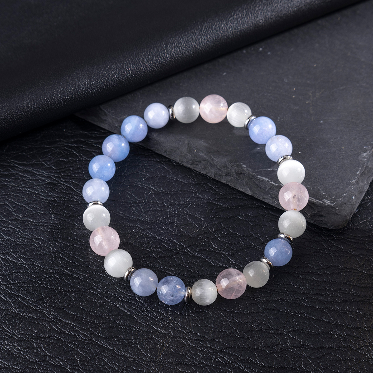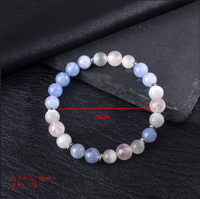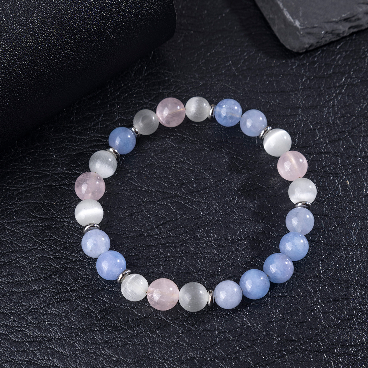 Bracelets en pierres précieuses, Oeil de chat, avec fil élastique & aigue-marine & quartz rose, fait à la main, bijoux de mode & pour femme, Vendu par PC