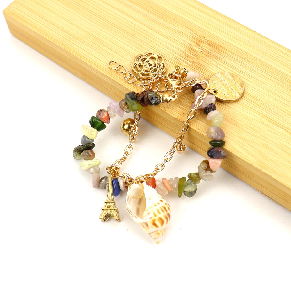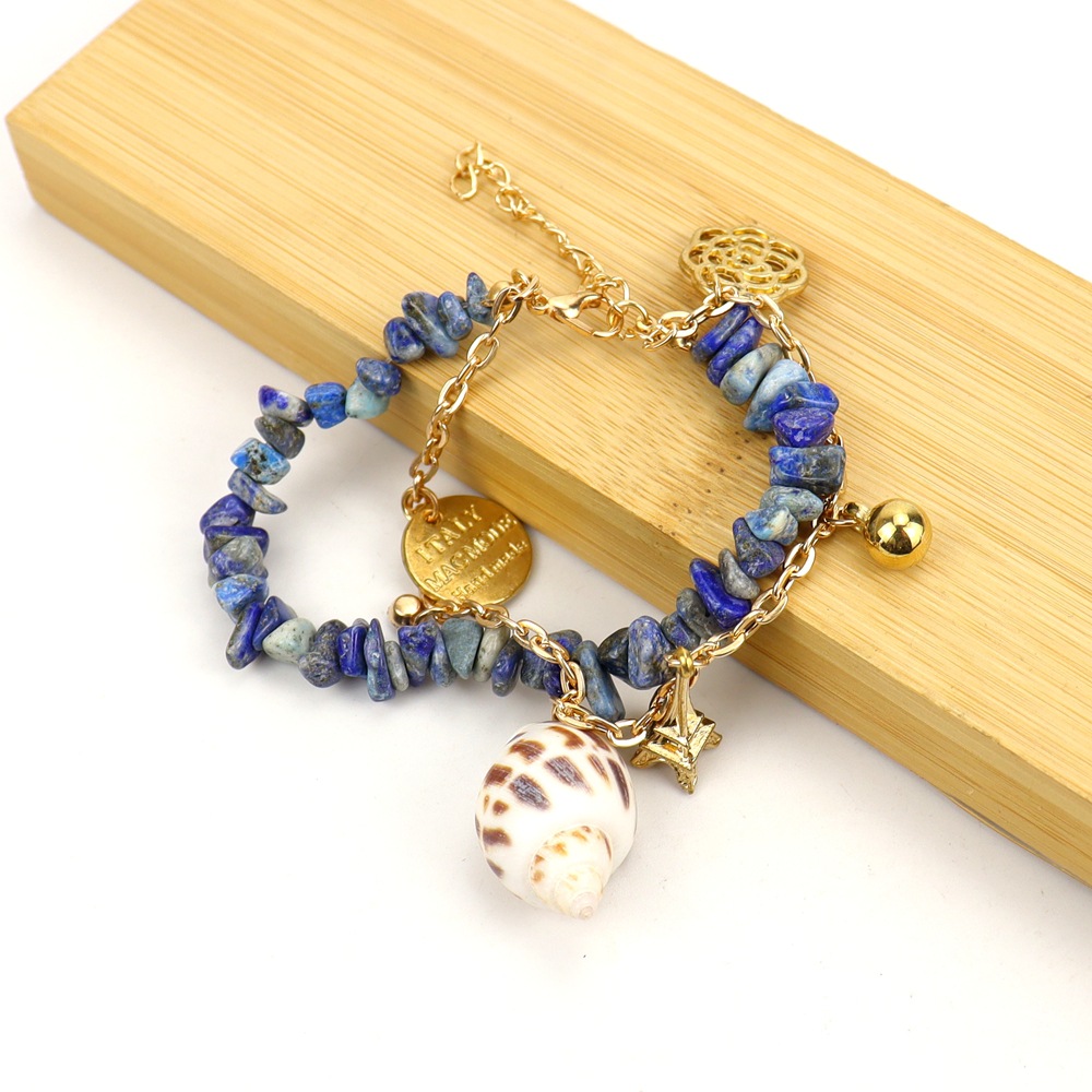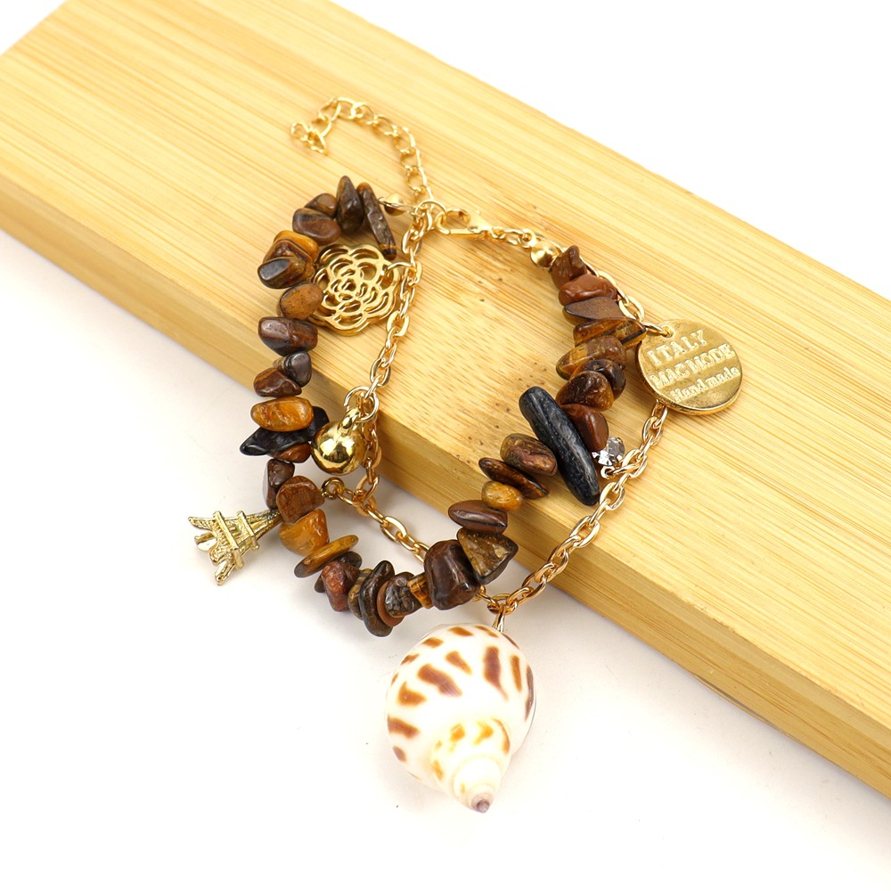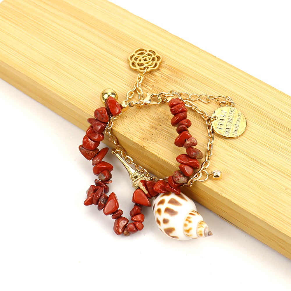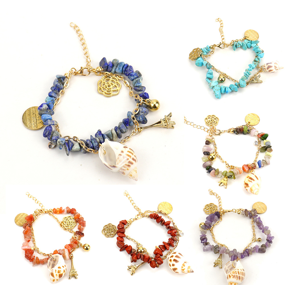 Bracelets en pierres précieuses, pierre gemme, avec coquille de trompette & laiton, avec 5cn chaînes de rallonge, fait à la main, Double couche & différents matériaux pour le choix & pour femme, doré, Longueur:Environ 17 cm, Vendu par PC