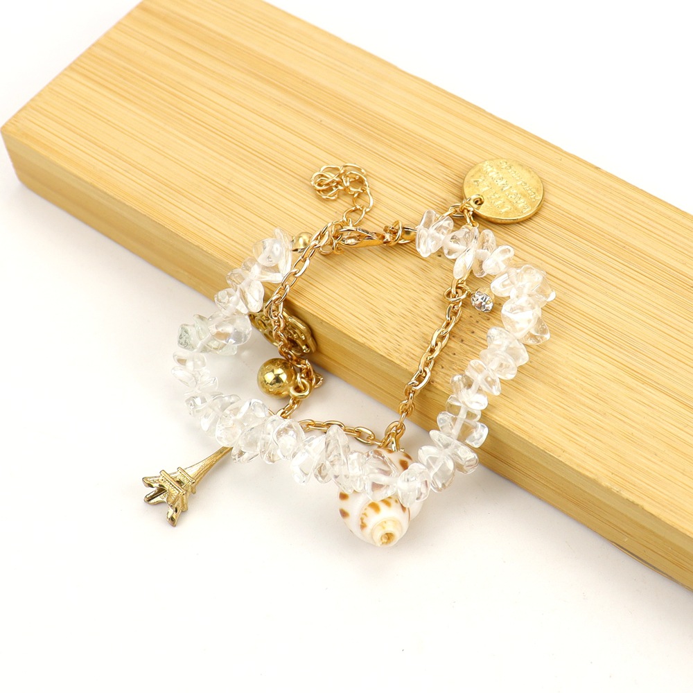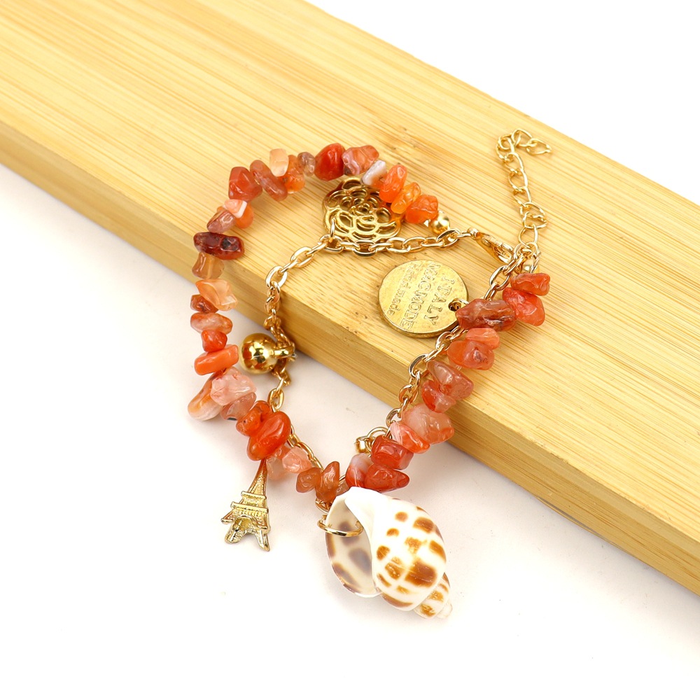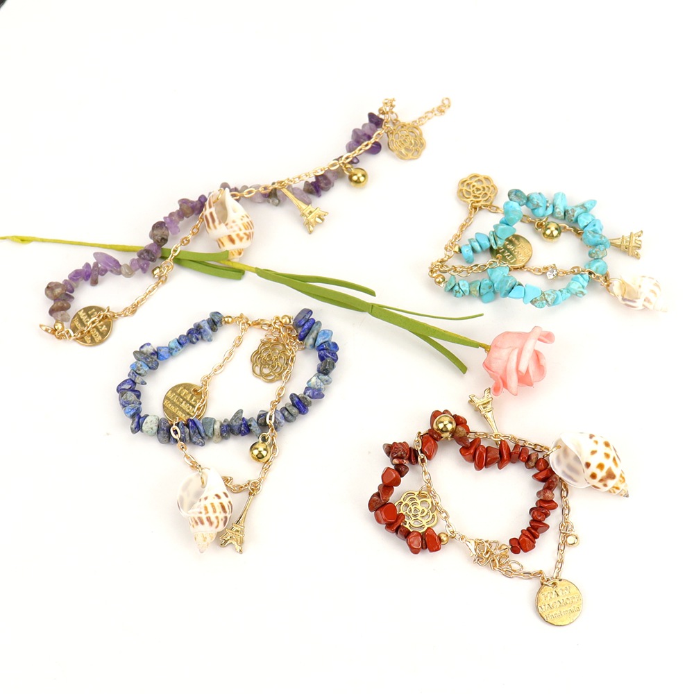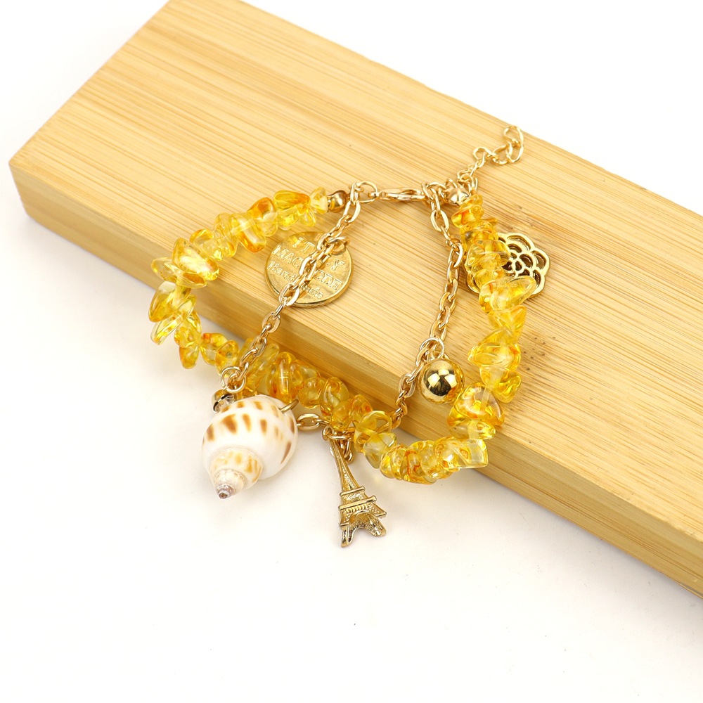 Bracelets en pierres précieuses, pierre gemme, avec coquille de trompette & laiton, avec 5cn chaînes de rallonge, fait à la main, Double couche & différents matériaux pour le choix & pour femme, doré, Longueur:Environ 17 cm, Vendu par PC