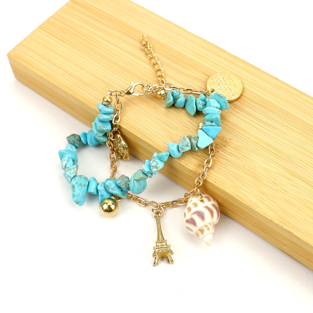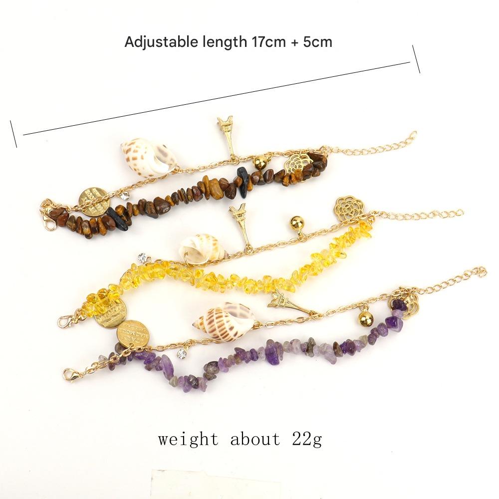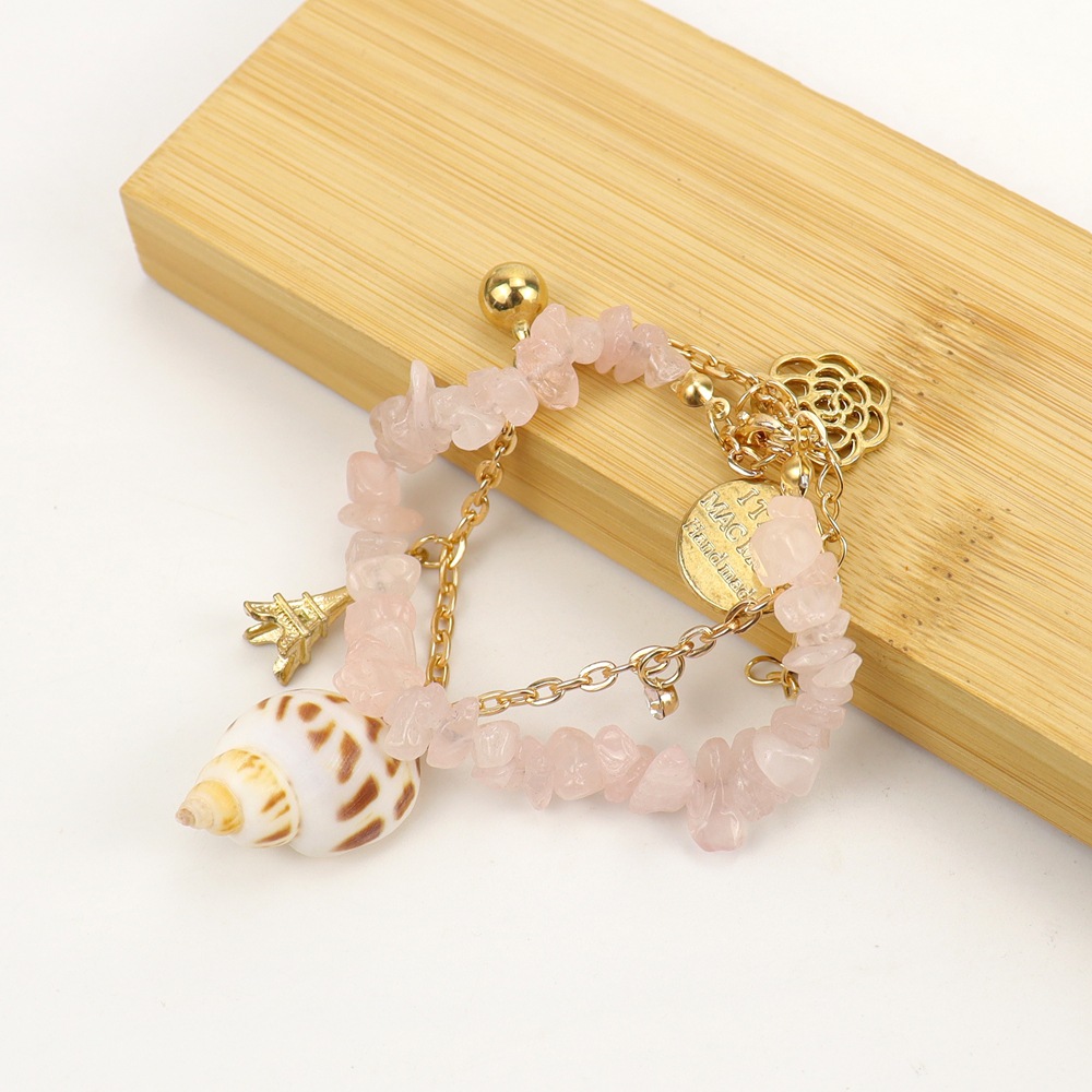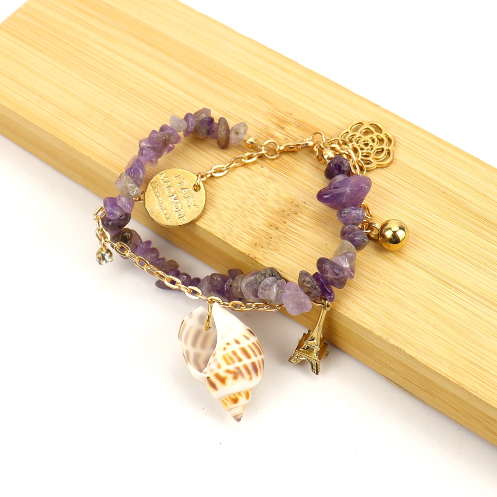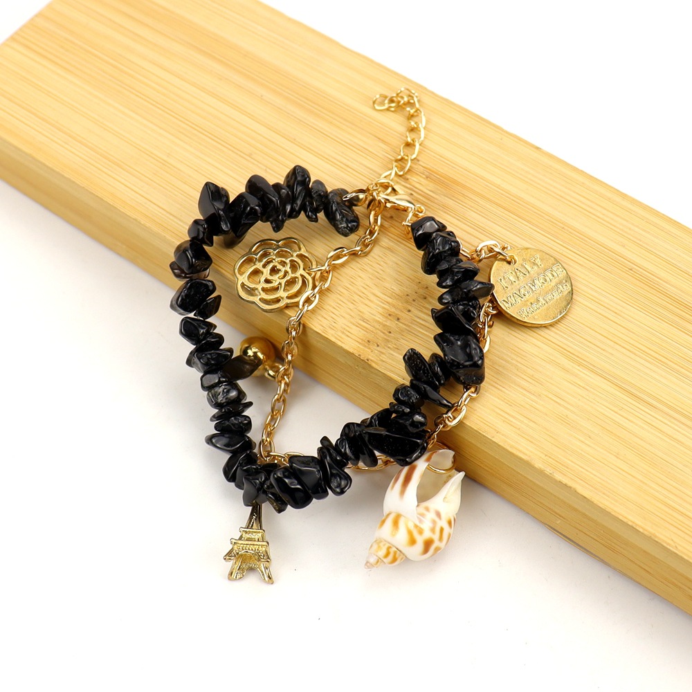 Bracelets en pierres précieuses, pierre gemme, avec coquille de trompette & laiton, avec 5cn chaînes de rallonge, fait à la main, Double couche & différents matériaux pour le choix & pour femme, doré, Longueur:Environ 17 cm, Vendu par PC