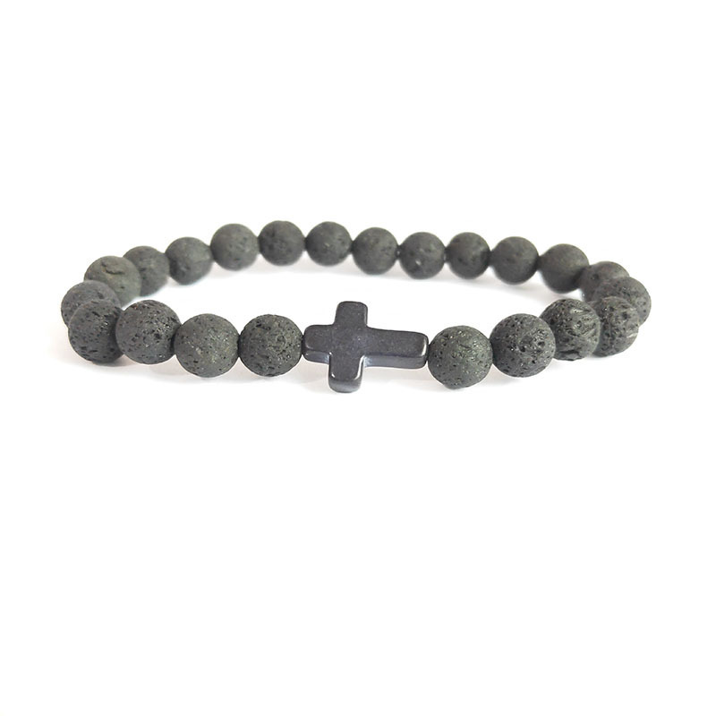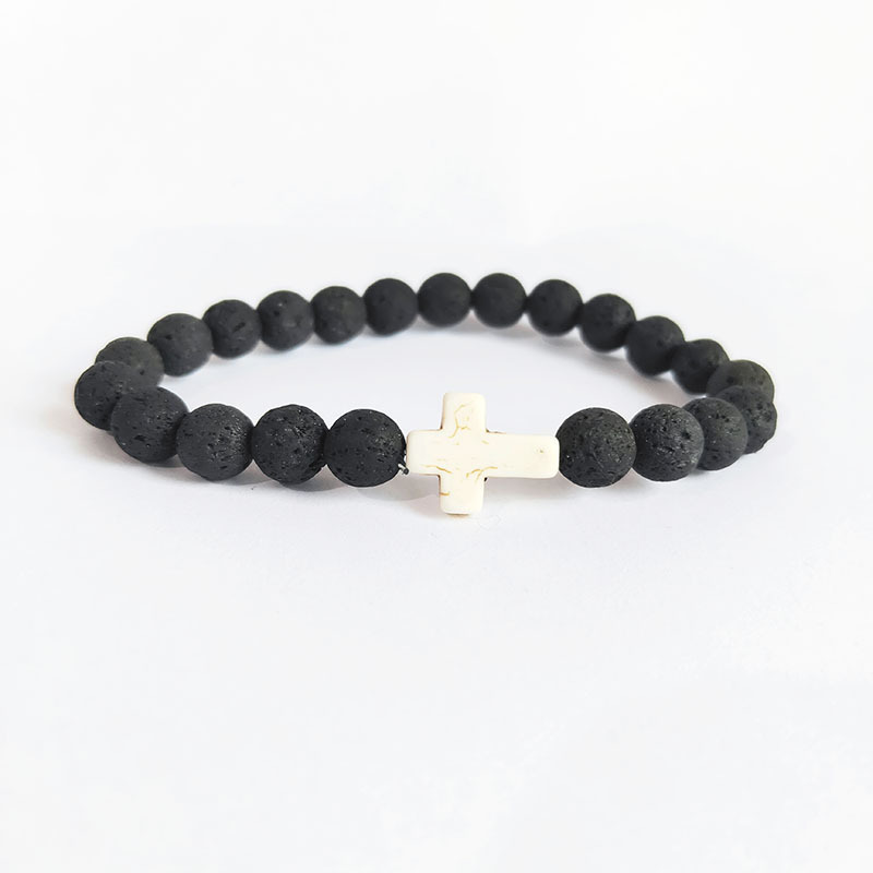 Bracelets en pierres précieuses, lave volcanique, avec turquoise, croix, bijoux de mode, plus de couleurs à choisir, 8mm, Longueur:19 cm, Vendu par PC