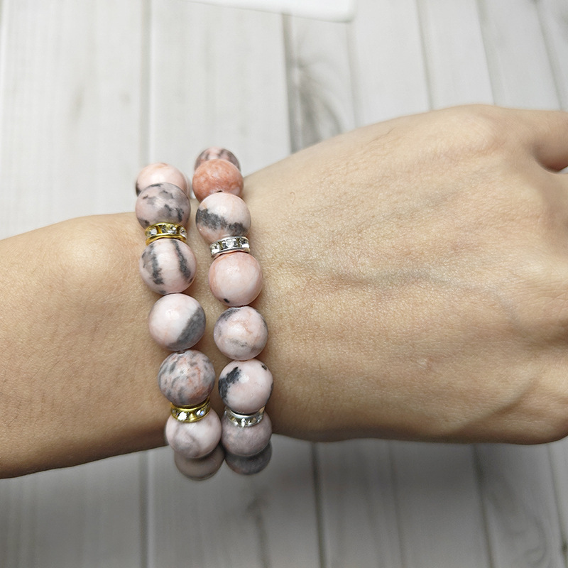Bracelets en pierres précieuses, Jaspe de zèbre, avec alliage de zinc, bijoux de mode & avec strass, plus de couleurs à choisir, 10mm, Longueur:21 cm, Vendu par PC