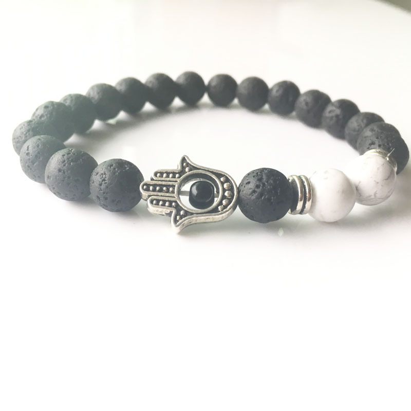 Bracelets en pierres précieuses, lave volcanique, avec Magnésite & alliage de zinc, bijoux de mode, couleurs mélangées, 8mm, Longueur:18 cm, Vendu par PC