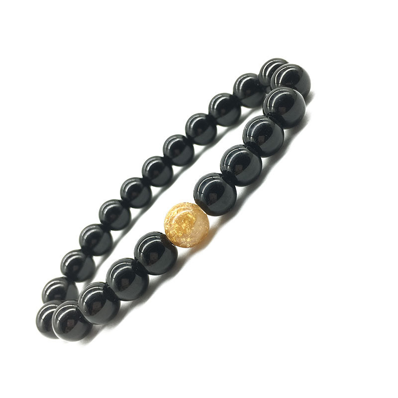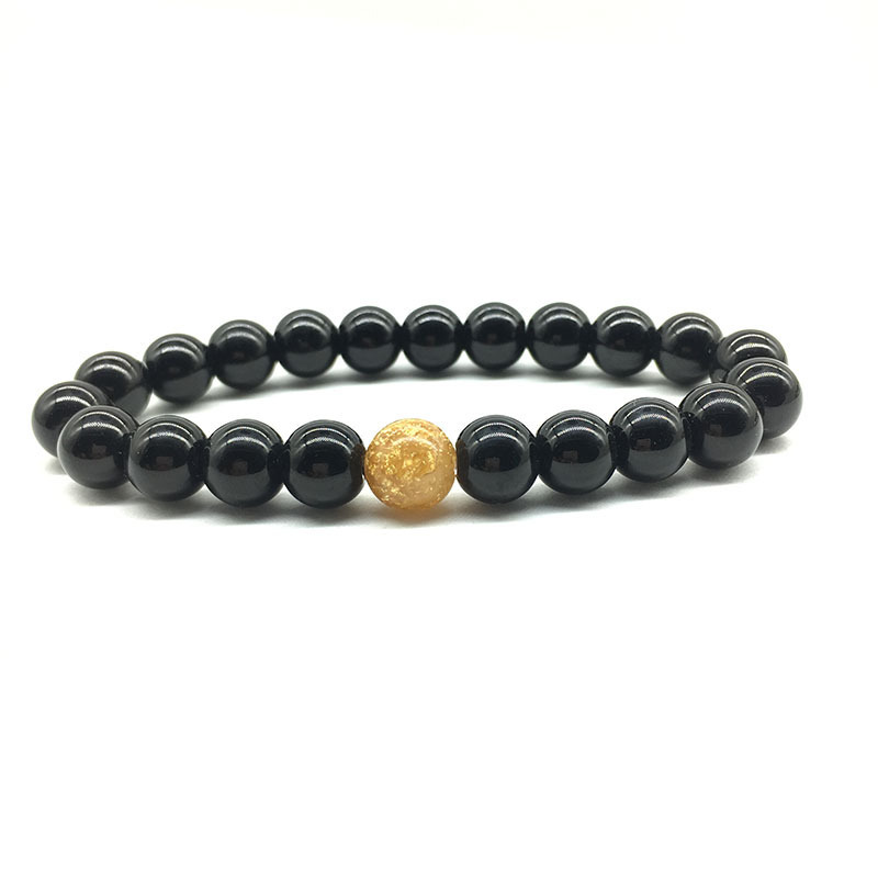 Bracelets en pierres précieuses, pierre noire, avec Feuille d'or, bijoux de mode, couleurs mélangées, 8mm, Longueur:19 cm, Vendu par PC