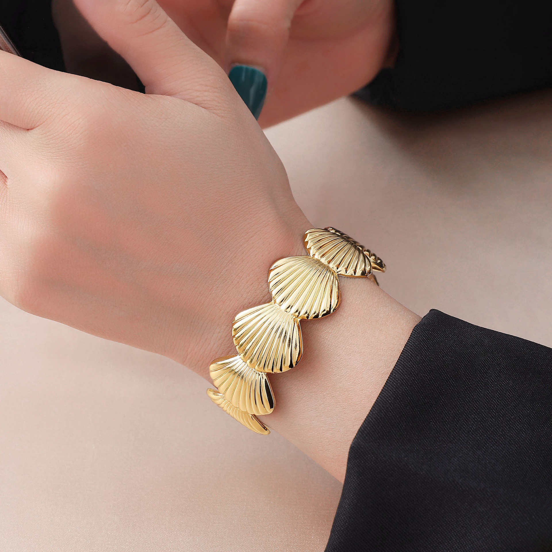 Bracelets manchette de fer , coquille, Placage, bijoux de mode & pour femme, doré, Vendu par PC