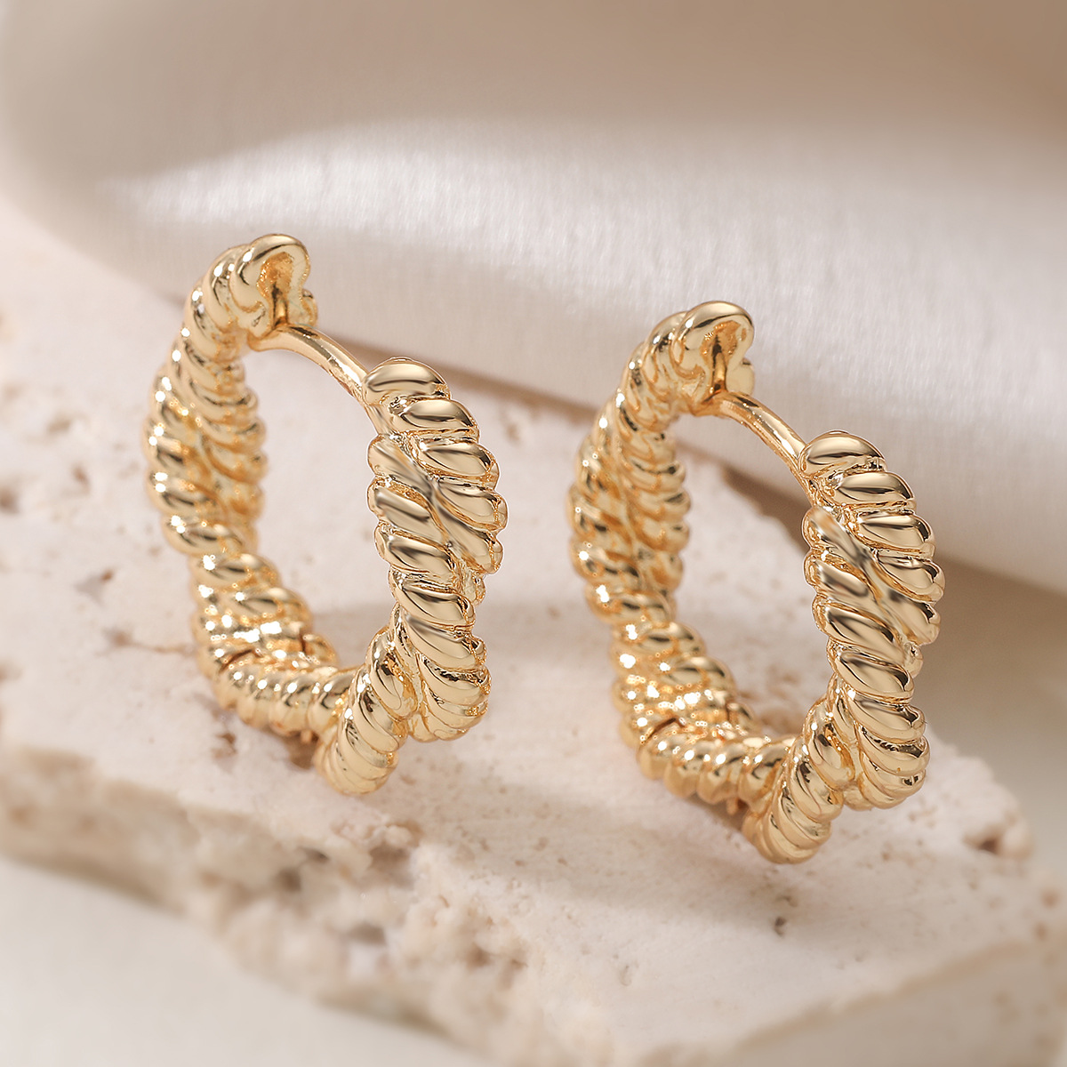 Brass Huggie Anneau d'oreille, laiton, Placage, pour femme, doré Vendu par paire