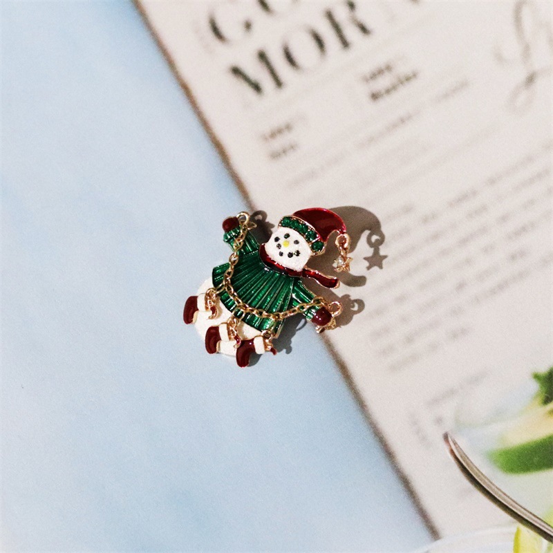 Broche de bijoux de Noël, alliage de zinc, bonhomme de neige, Placage de couleur d'or, Conception de Noël & pour femme & avec strass, couleurs mélangées, 41x35mm, Vendu par PC