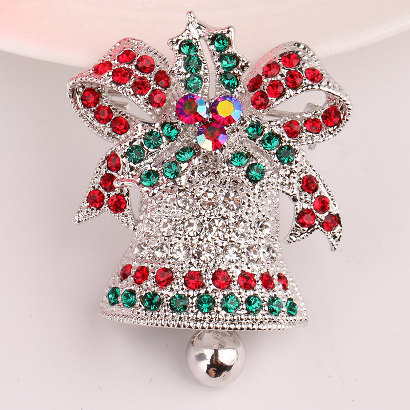 Broche de bijoux de Noël, alliage de zinc, cloche de noël, Placage, bijoux de mode & avec strass, plus de couleurs à choisir, Vendu par PC