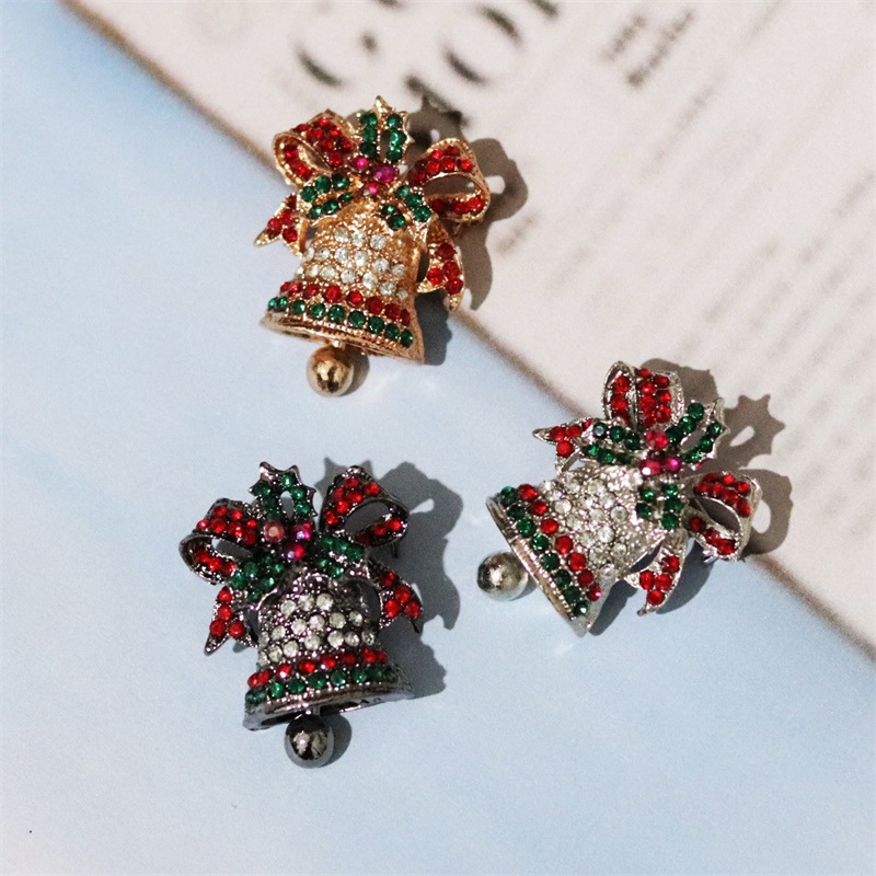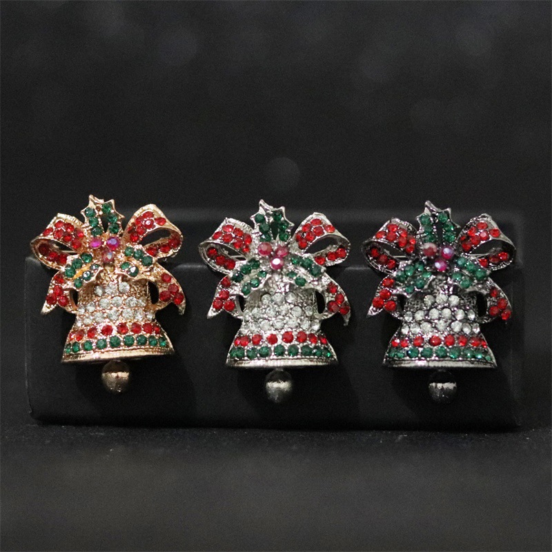 Broche de bijoux de Noël, alliage de zinc, cloche de noël, Placage, bijoux de mode & avec strass, plus de couleurs à choisir, 39x29mm, Vendu par PC