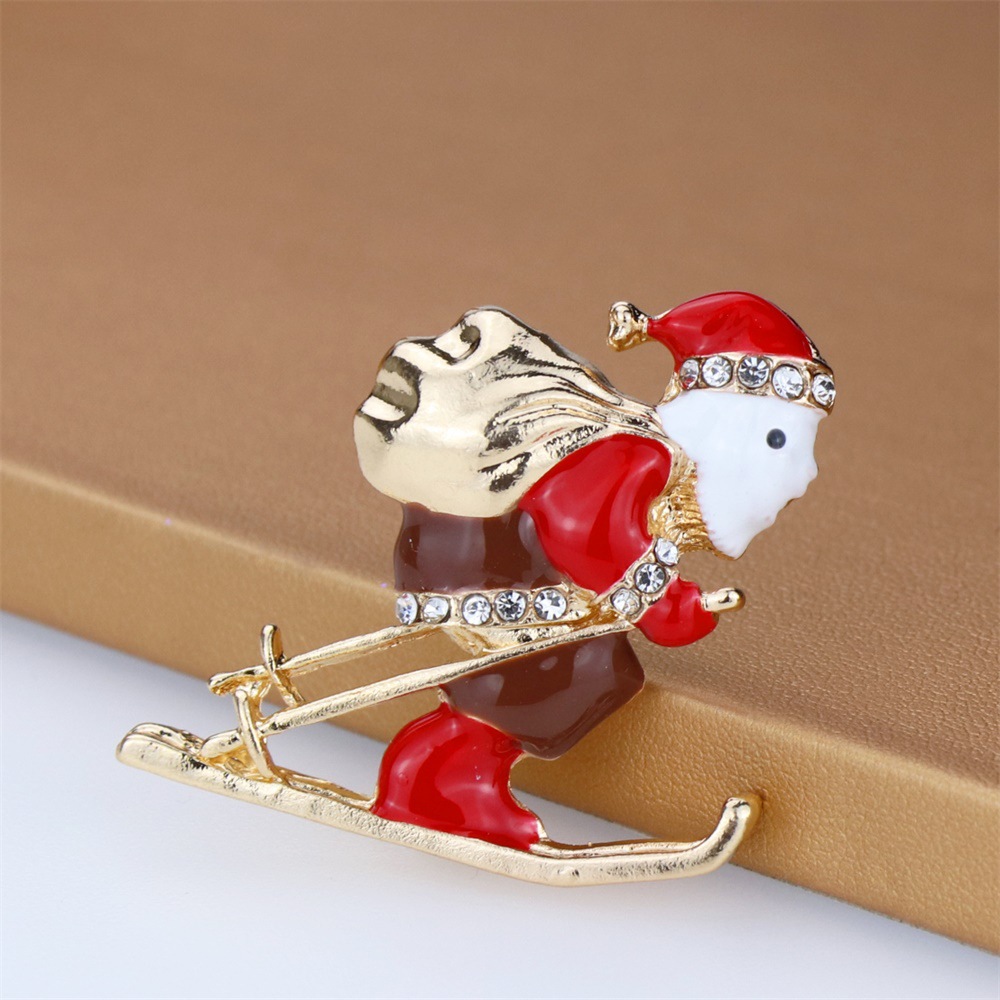 Broche de bijoux de Noël, alliage de zinc, le père noël, Placage, bijoux de mode & émail & avec strass, plus de couleurs à choisir, 38x40mm, Vendu par PC