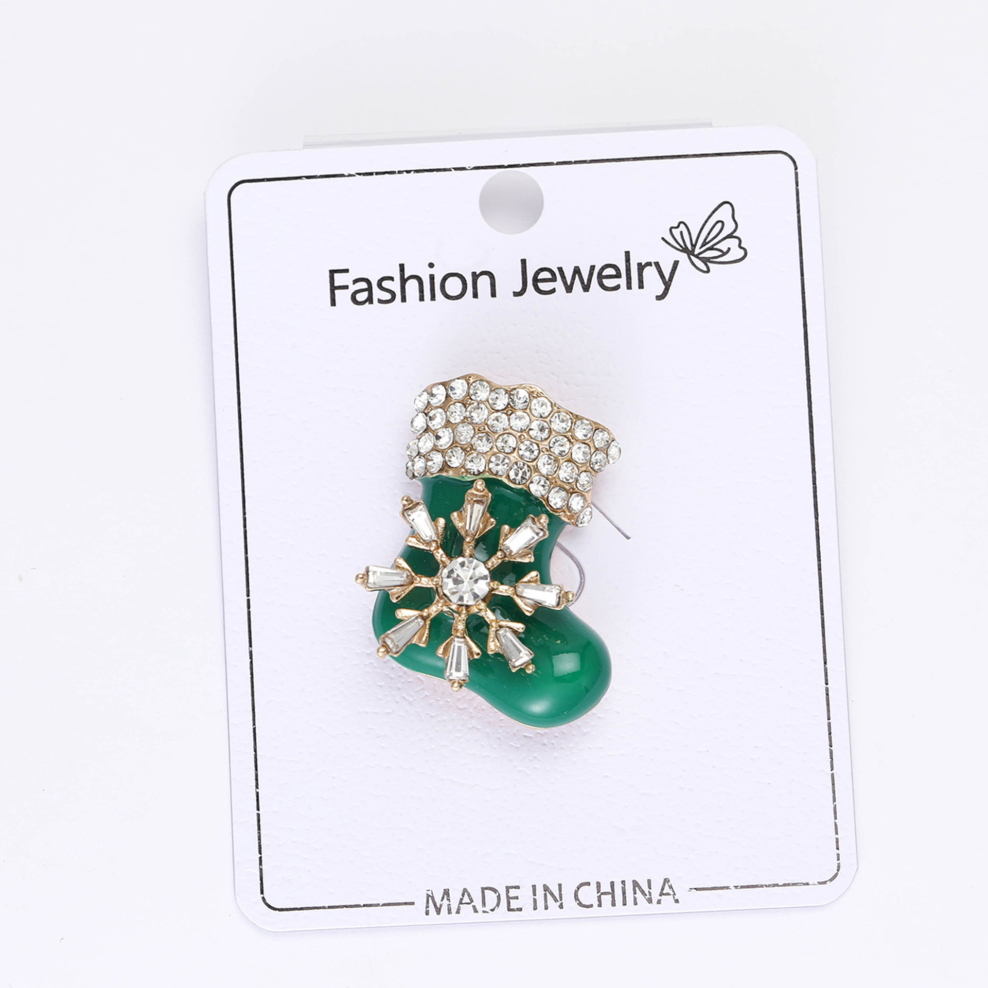 Broche de bijoux de Noël, alliage de zinc, chaussette de noël, Placage, bijoux de mode & émail & avec strass, vert, Vendu par PC