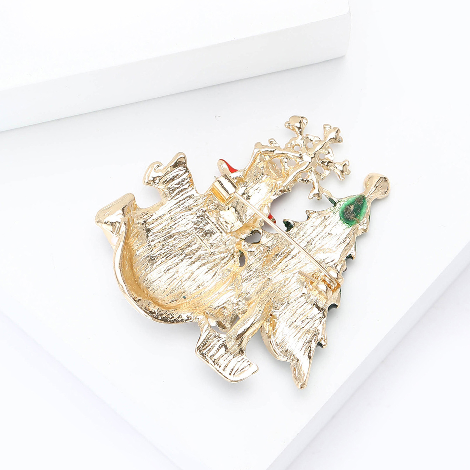 alliage de zinc broche, Placage de couleur d'or, Bijoux de Noël & pour femme & émail & avec strass, sans plomb et cadmium Vendu par PC