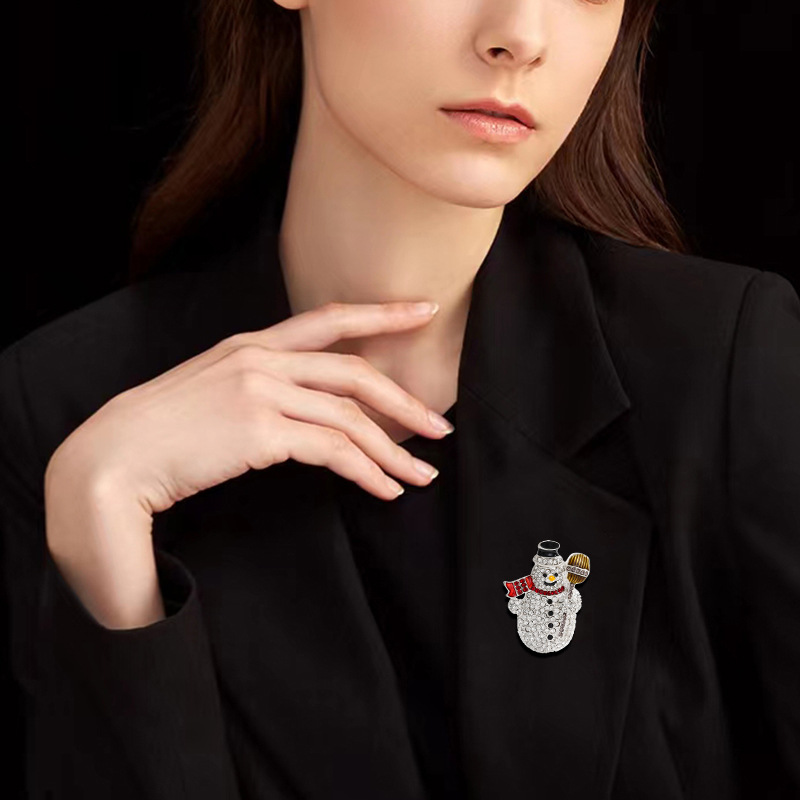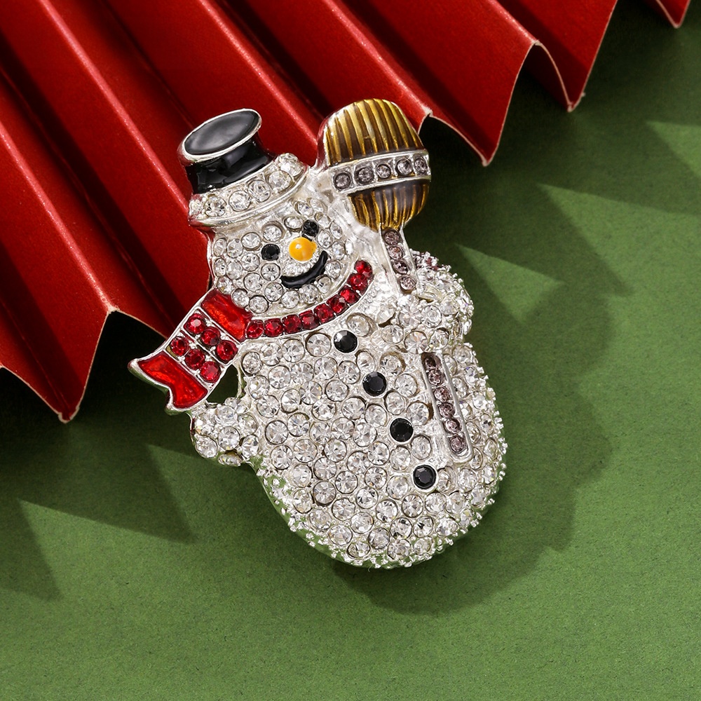 Broche de bijoux de Noël, alliage de zinc, bonhomme de neige, unisexe & émail & avec strass, argent, Vendu par PC