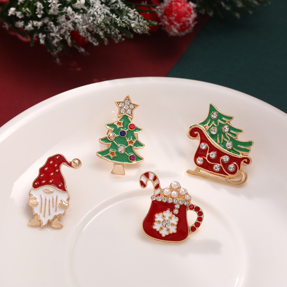 alliage de zinc broche, Placage de couleur d'or, Bijoux de Noël & pour femme & émail & avec strass, sans plomb et cadmium Vendu par PC