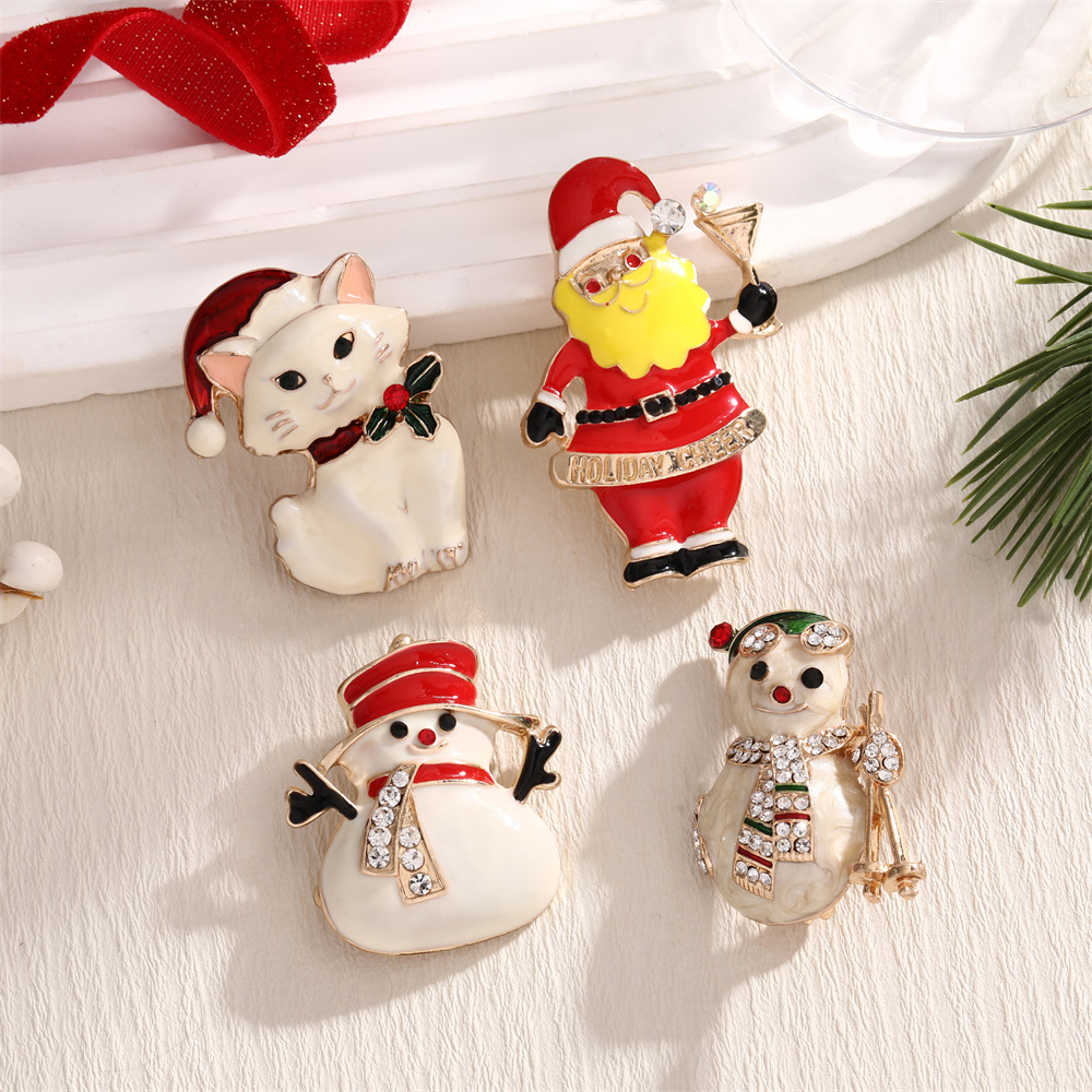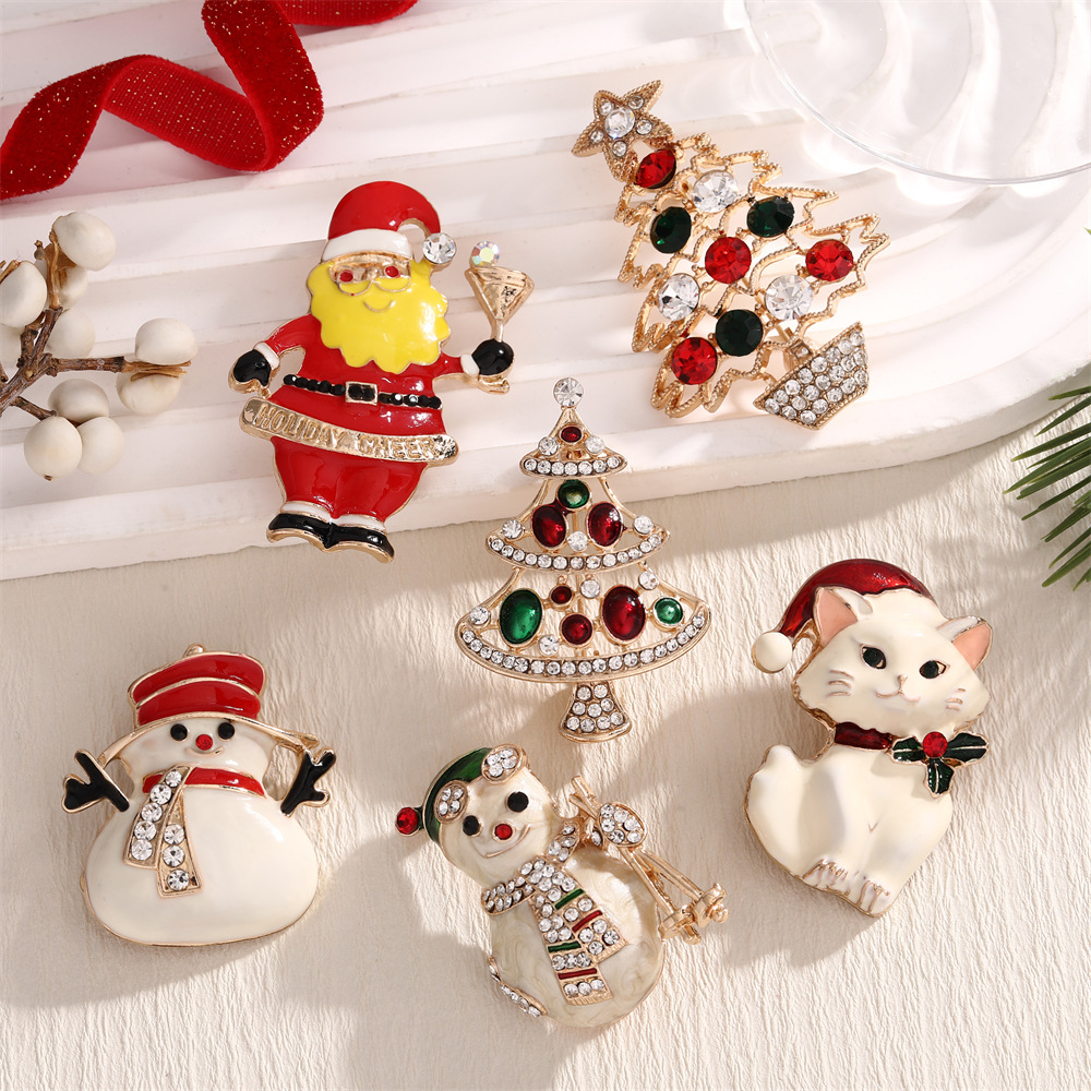 Broche de bijoux de Noël, alliage de zinc, Placage de couleur d'or, bijoux de mode & émail & avec strass, plus de couleurs à choisir, Vendu par PC