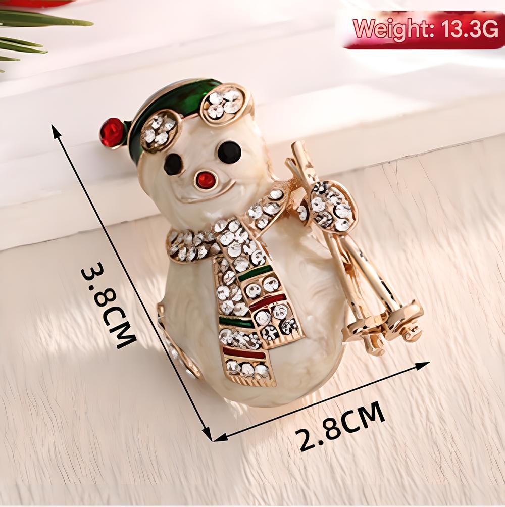 Broche de bijoux de Noël, alliage de zinc, bonhomme de neige, Placage de couleur argentée, émail & poudre colorée, protéger l'environnement, sans nickel, plomb et cadmium Vendu par PC