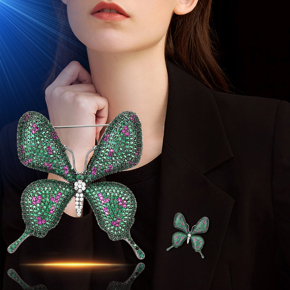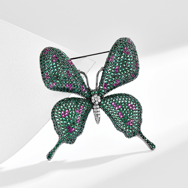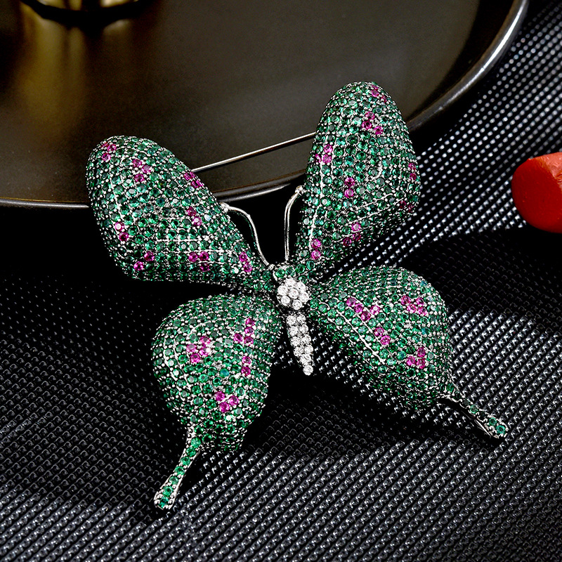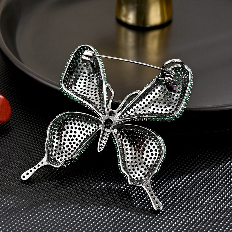 Broche de zircon cubique, laiton, Noeud papillon, Plaqué de platine, pavé de micro zircon Vendu par PC