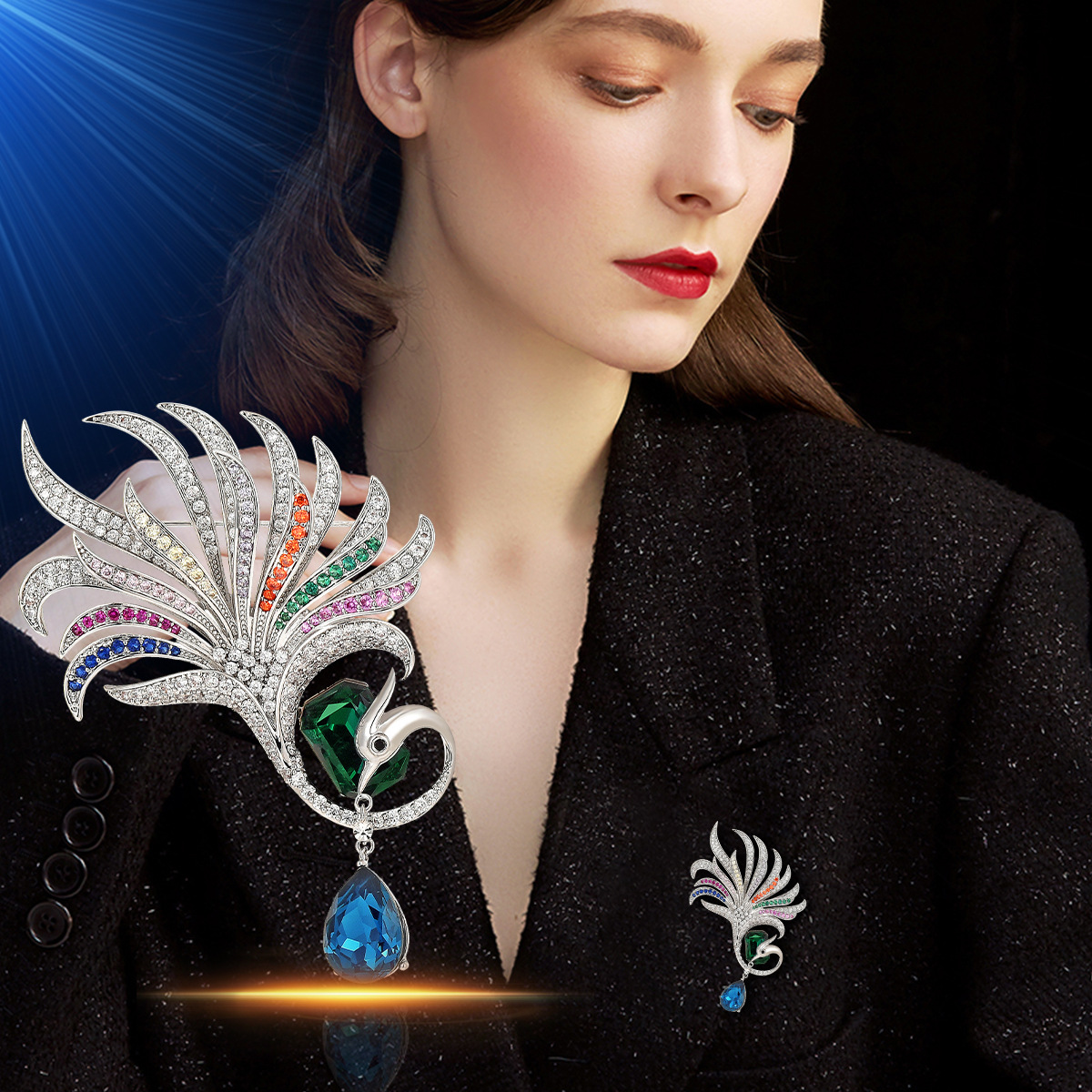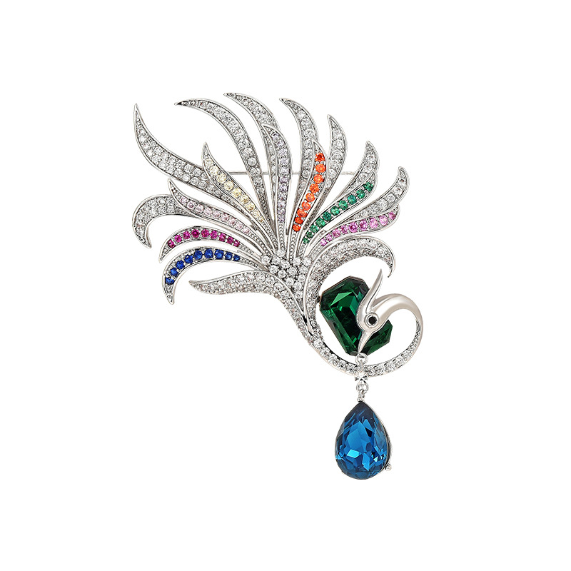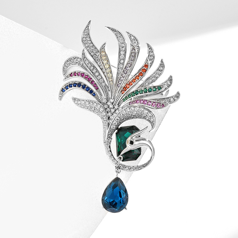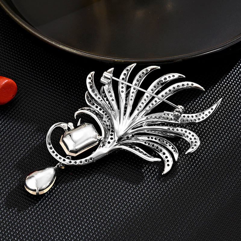 Broche de zircon cubique, laiton, pavé de micro zircon & pour femme, argent, 72x51mm, Vendu par PC